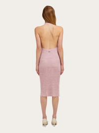 Claque linen gives this sleeveless knitted dress an intriguing texture. Sensual yet sporty, the clean line of this mid-length slip allows the unique features of the soft fabric to shine. The super low cut back is accented by a custom metal tab. - Composition: 95% linen, 5% polyamide - Model measurements: Height 5' 10"/178 cm; Bust 32 / 81cm; Waist 25"/63 cm; Hips 34½"/88 cm - Model wearing: 38/XS - Made in ITALY - Product code: 13H263 783886