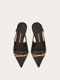 With a pointed tip and slim contrasting micro bow, this new Ferragamo slingback means business. Supple and refined, the kid leather upper has a loafer-like cut with double stitching, while the slim covered heel stands at a comfortable mid height. - Composition: kid leather - Made in ITALY - Product code: 01K799 790582
