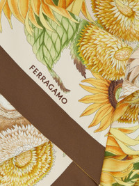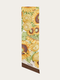 The smartest wardrobe accessory: the pure silk bandeau can be worn tied around your neck, in your hair, as a belt or even as a detail to personalize your bag- with its versatility, the only limit is your imagination. This version is decorated with the Sunflower print. - length 62.9 IN width 7.8 IN - Composition: 100% silk - Made in ITALY - Product code: 320973 780095