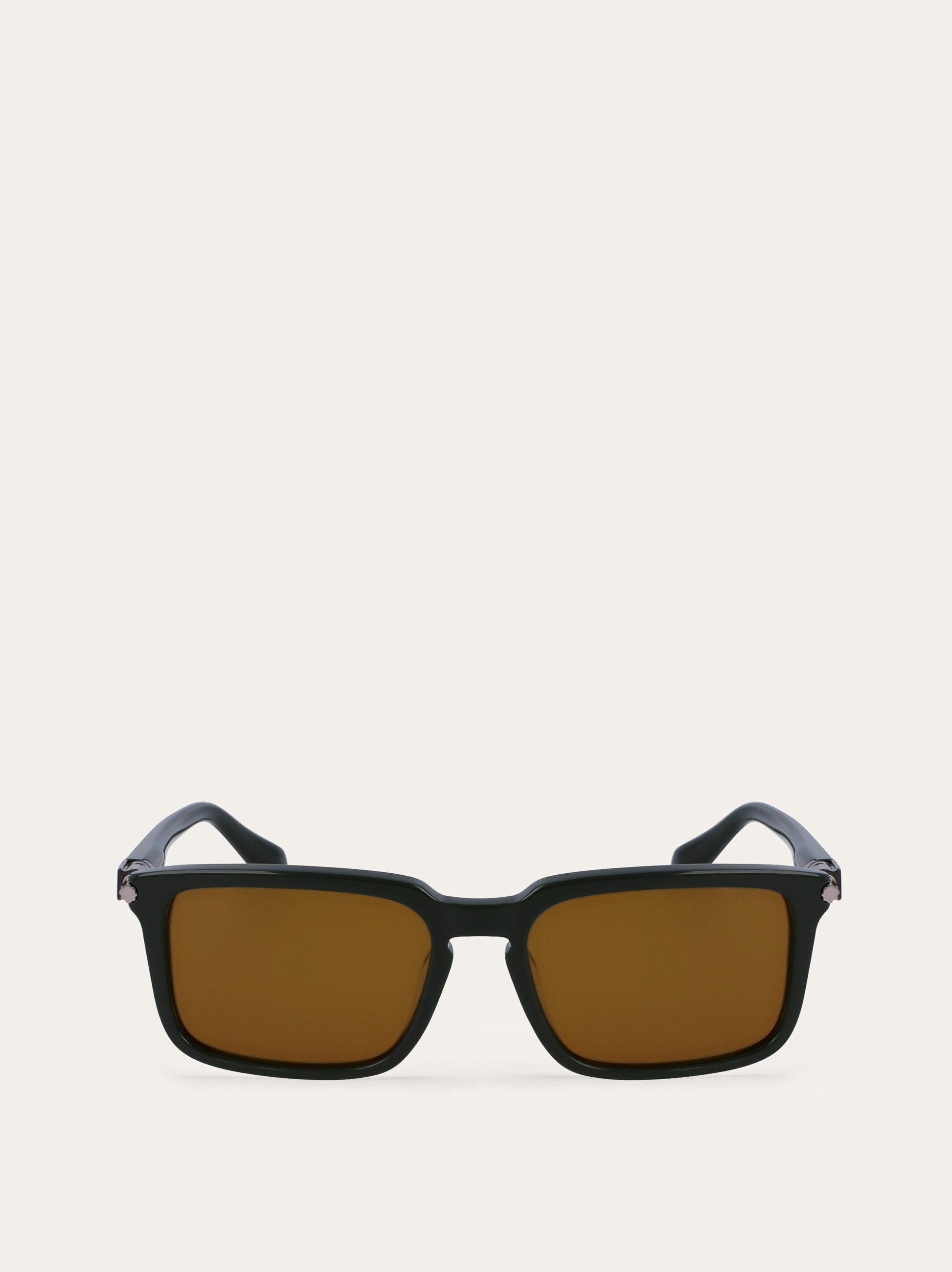 Rectangular frame sunglasses.This full-acetate construction is characterized by a keyhole bridge pointing up the strong personality and elegance of the design.The temples match the frame and are enriched by Gancini-shaped metal plaques that incorporate the hinges and by a metal Gancini on the end-pieces. The color palette features classic and vintage nuances. - Composition: acetate - Anti-UV, anti-scratch lenses - Universal fit. Lens-nose-temple size: 56-18-140 mm - Frame compatible with graduated lenses - Made in ITALY - Product code: 51G100 771771