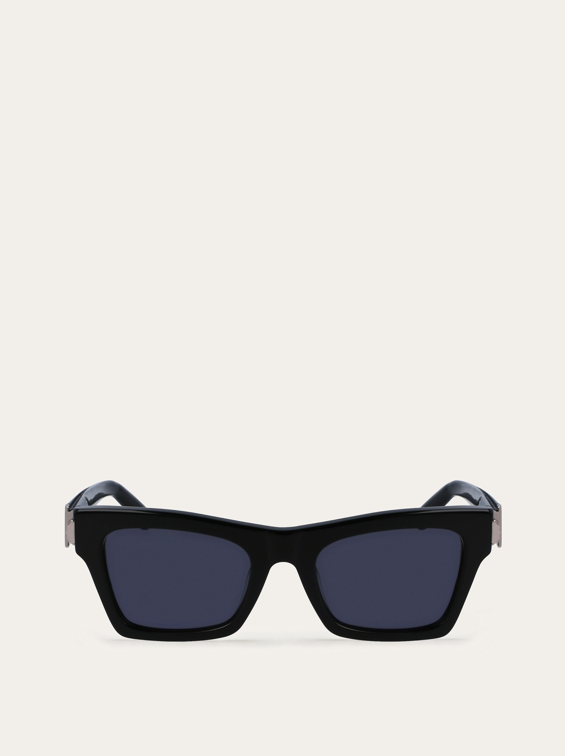 Acetate sunglasses with a modified rectangular shape that adds a touch of sophistication and elegance to the design. On the temples, the distinctive prism-effect Gancini detail integrates the hinge and acts as an end-piece on the frame. - Composition: acetate - Anti-UV, anti-scratch lenses - Global fit. Lens-nose-temple size: 52-21-135 mm - Frame compatible with graduated lenses - Made in ITALY - Product code: 51H013 774528