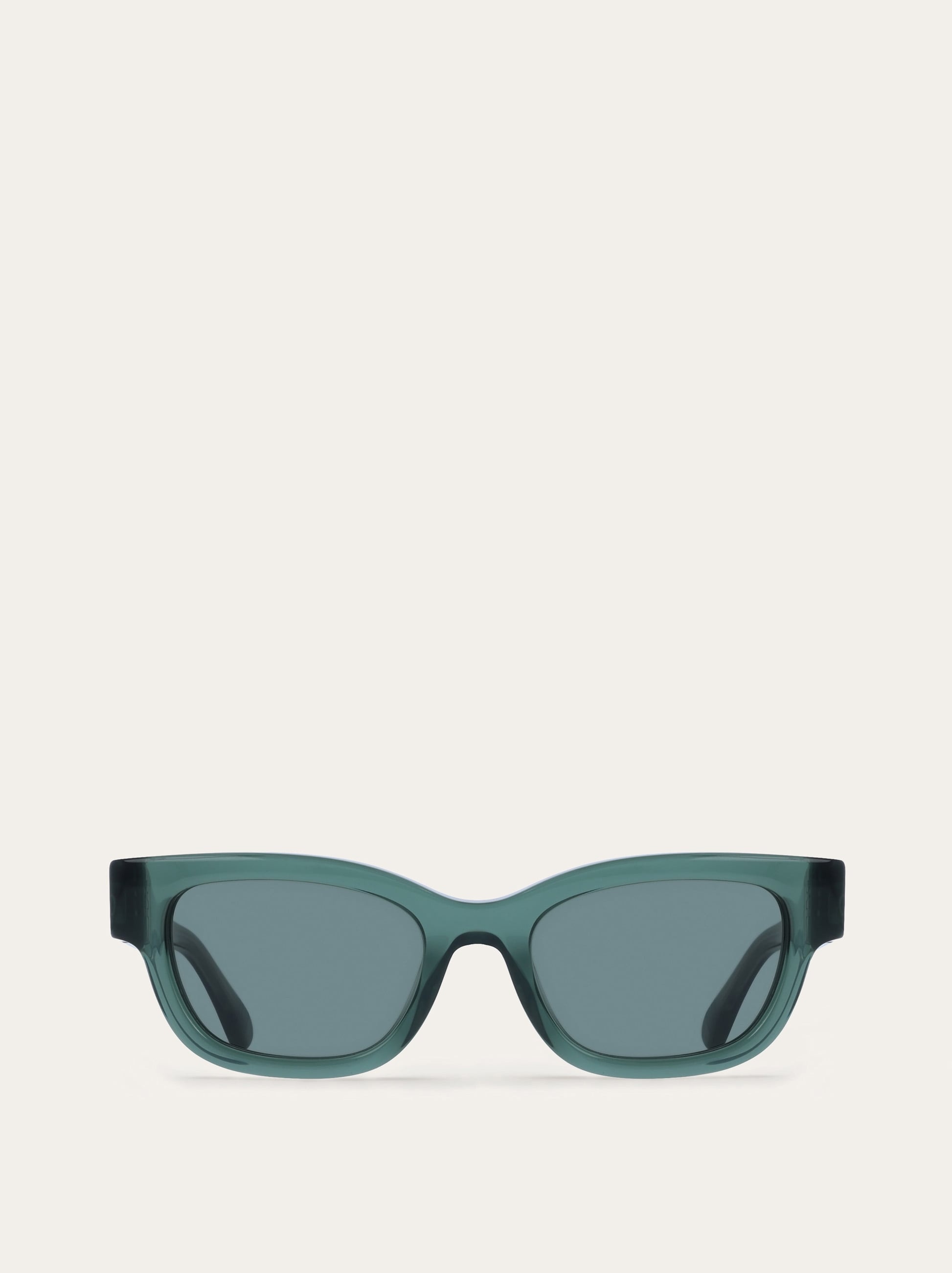 Women’s rectangular acetate sunglasses characterized by bulky profiles. The Gancini ornament on the temples incorporates the hinge, thus becoming a functional element too. The temples reveal their metal core in the transparent colour versions. - Composition: acetate - Anti-UV and anti-scratch lenses - Universal Fit. Lens-nose-temple size: 52-20-140 - Frame compatible with graduated lenses - Made in ITALY - Product code: 51H067 786645