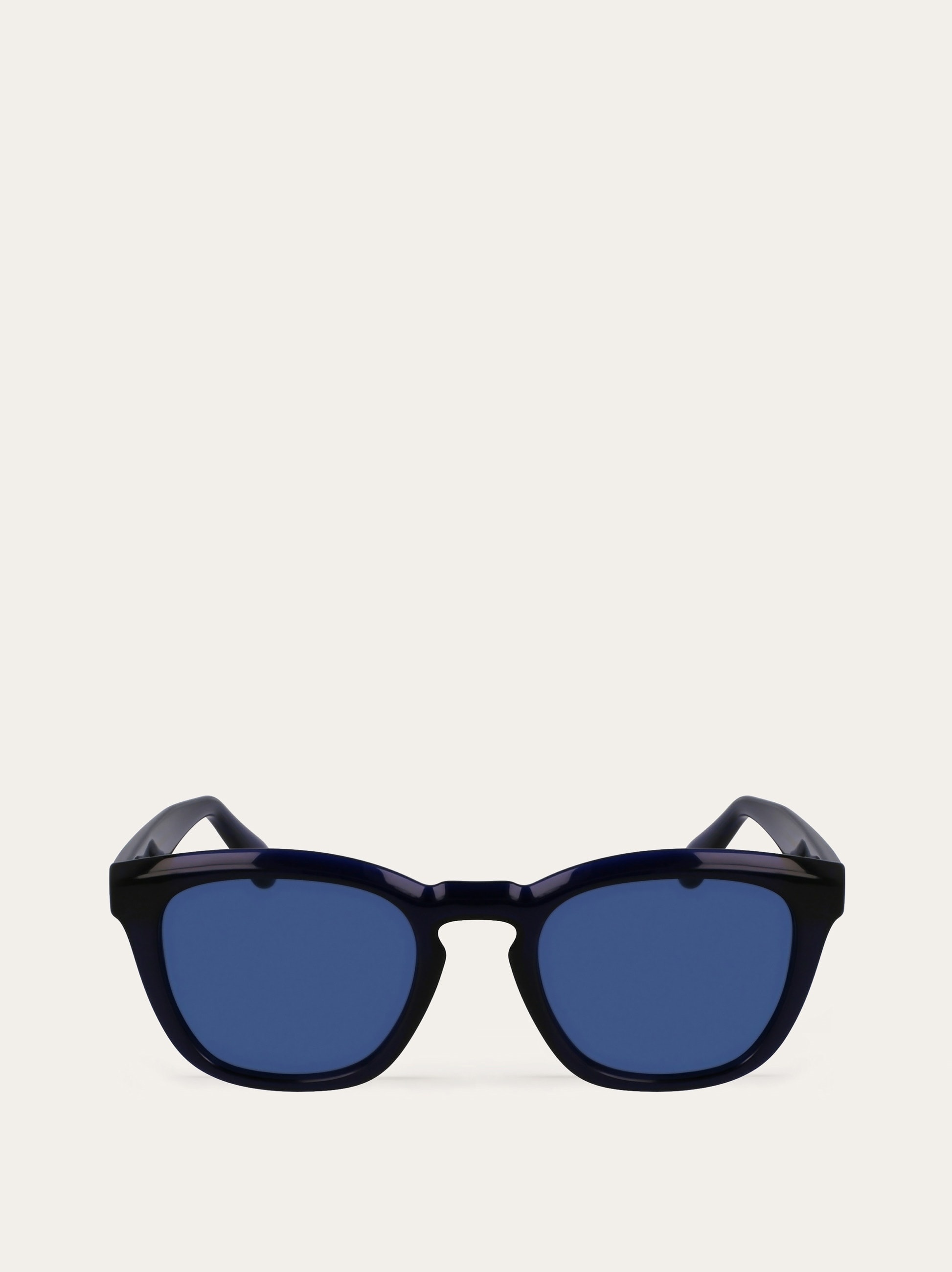 Modified rectangular men's sunglasses made of injected Acetate Renew, a blend of bio-plastic derived from sustainably sourced wood pulp, and recycled content recovered from industrial processes. The customized metal core is visible through the transparent colorations. - Composition: injected Acetate Renew - Anti-UV, anti-scratch lenses - Global fit. Lens-nose-temple sizes: 50-21-145 mm - Frame compatible with graduated lenses - Made in ITALY - Product code: 51H040 782123