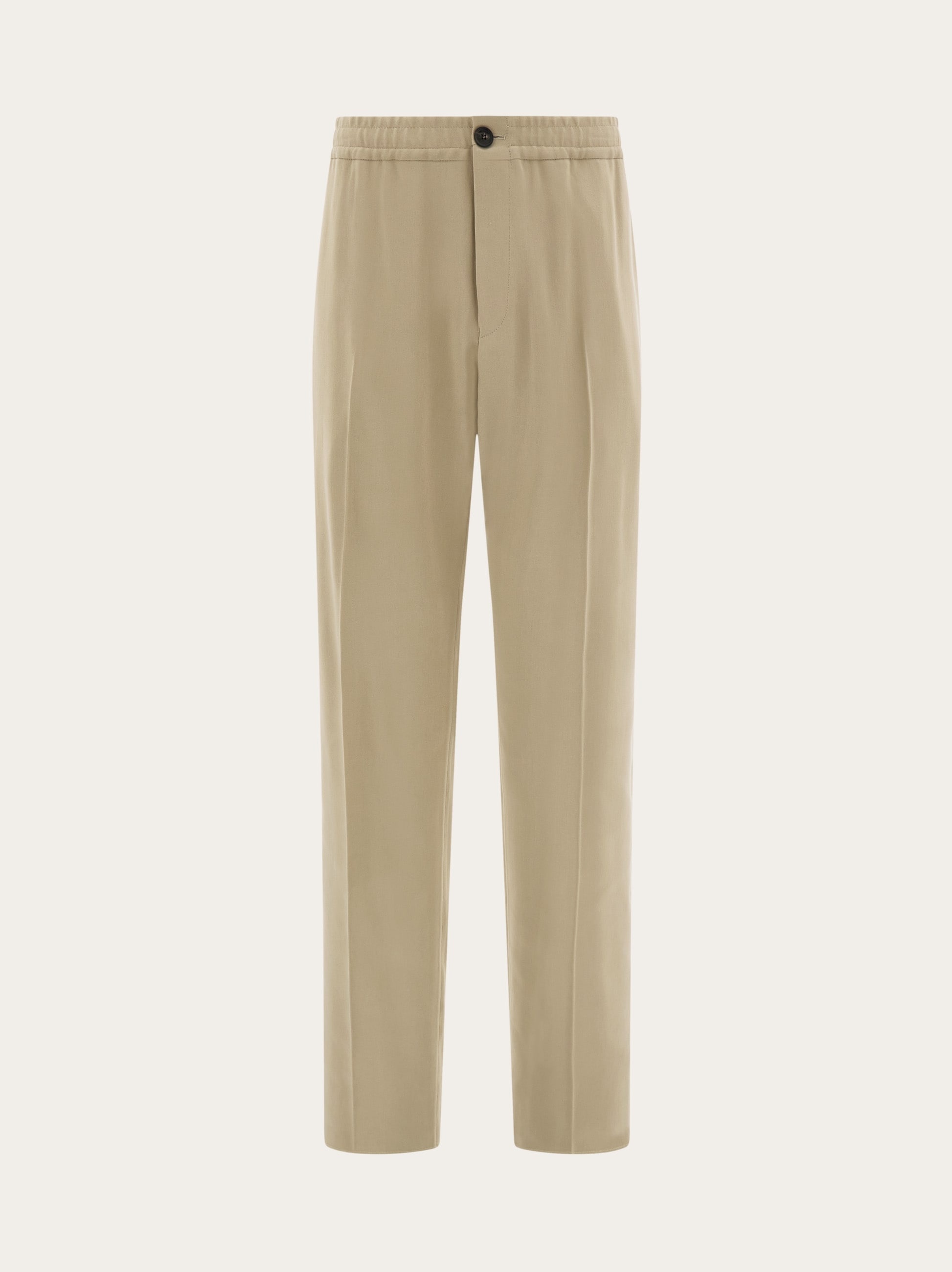 The relaxed jogger meets the tailored trouser: new crepe cotton viscose jogger trouser with tailoring details such as a premade waistband with elastic insert and concealed zip. Slit pockets at the sides and a welt pocket on the back complete the design. - Composition: 63% cotton, 30% viscose, 7% silk - Made in ITALY - Product code: 144746 784677