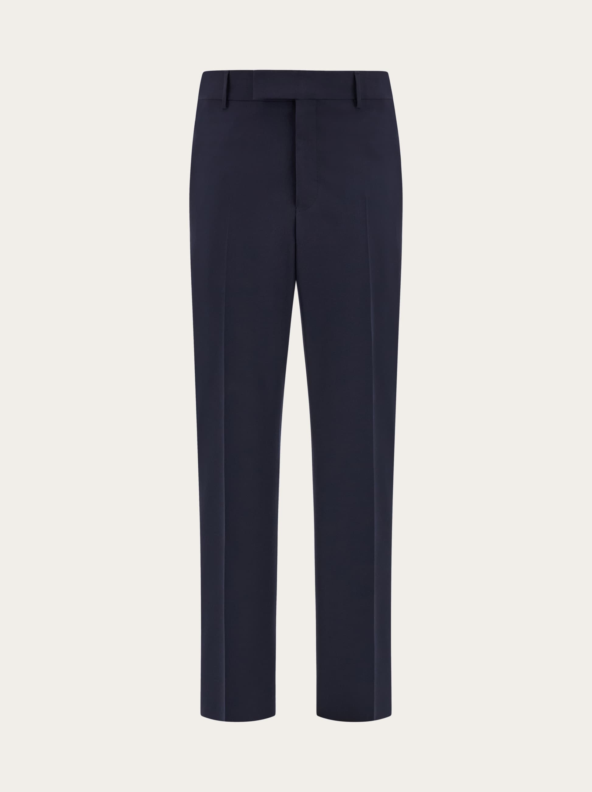 These tailored trousers are crafted from cool wool, and feature a classic fit with pressed pleats on the front and back. The encased waistband fastens with an overlapping tab and metal hooks for a refined finish that echoes high end tailoring. Sartorial details, such as the inserted pockets at the hips and a welt pocket at the back, enhance this formal and elegantly timeless design. - Composition: 100% virgin wool - Made in ITALY - Product code: 144274 780585