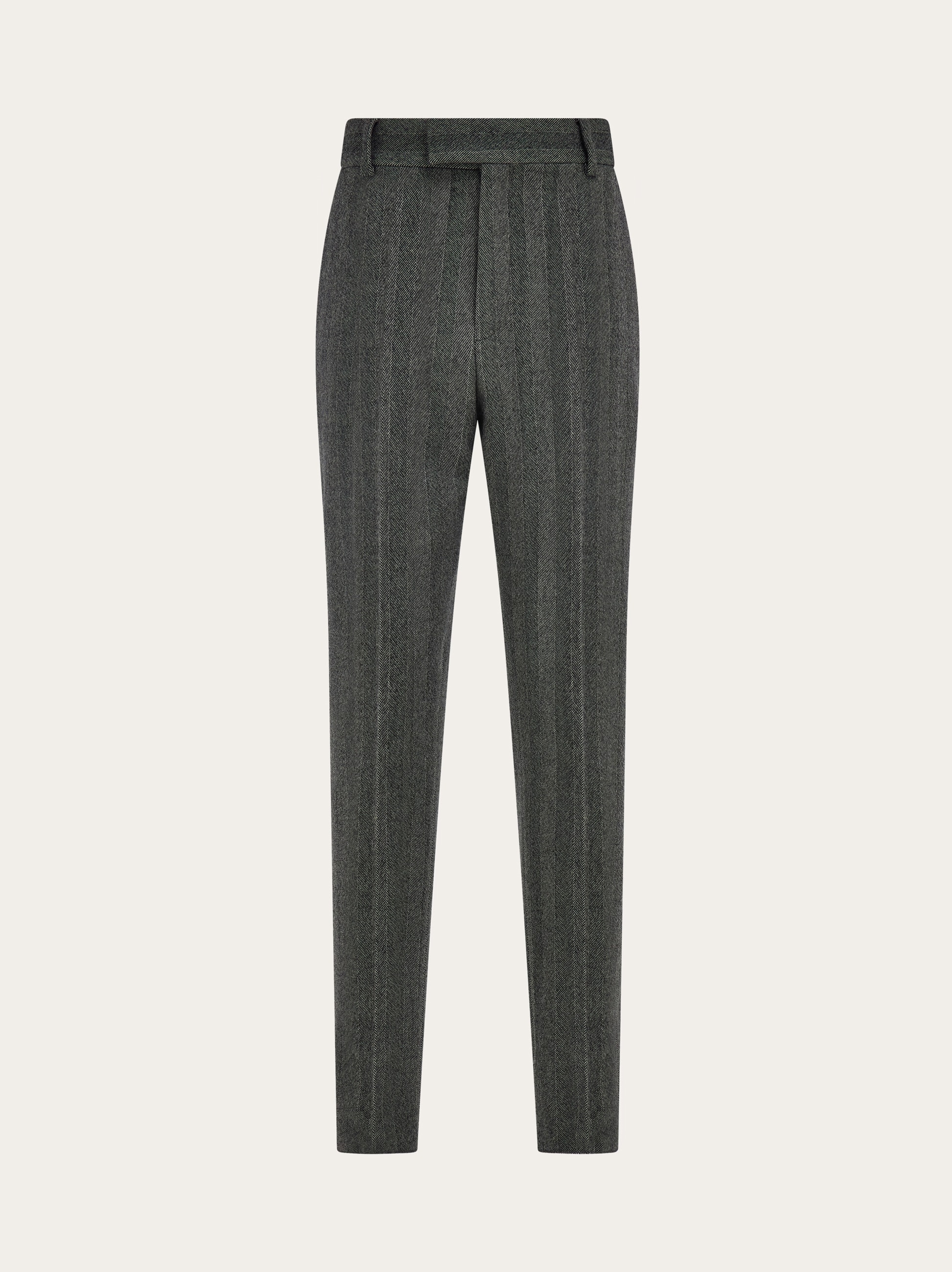 Lightweight wool stretch tailored trouser made of stretch wool chevron with a rich texture. Cut to a slim fit, they features an ironed crease along the leg and hook and eye fastening at the waist. - Composition: 92% pure virgin wool, 6% polyamide, 2% elastane - Made in ITALY - Product code: 145278 788958