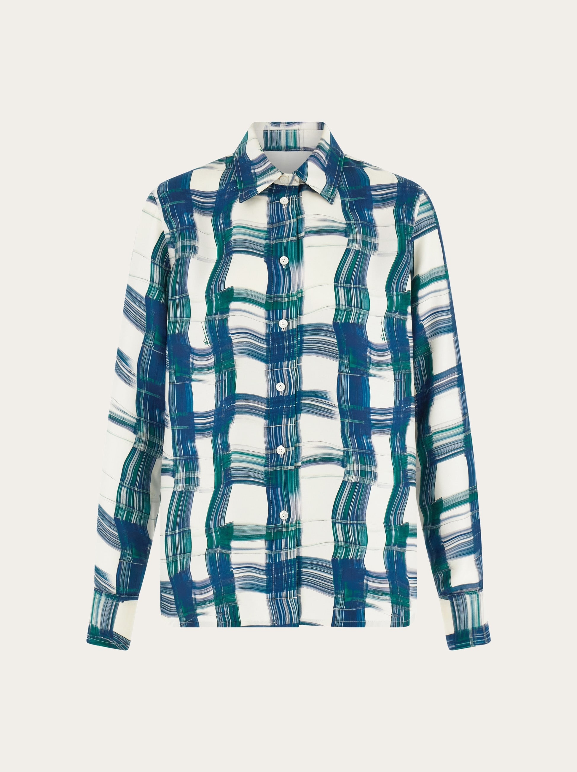 A very versatile piece. The silk shirt marks a new season featuring the maxi tartan with brush stroke effect. Following the lines of masculine tailoring, the cut is straight, with back yoke and a straight fit on the bust. - Composition: 100% organic silk - Model measurements: Height 5' 9½"/177 cm; Bust 32½ cm; Waist 24½"/62 cm; Hips 35½"/90 cm - Model wearing: 38/XS - Made in ITALY - Product code: 13H410 785793