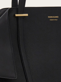 A distinguished edition of the Ferragamo tote, in delicious calfskin leather. The folded sides enhance the rich feel of the fabric, ideal to elevate everyday looks. The leather top handles extend along the front panels, punctuated by a simple rectangular golden clasp. A an embossed logo on the front panel completes the design of this ergonomic hold all that wraps the body perfectly as you move. - A) Height 10.0 IN B) Length 12.4 IN C) Width 5.5 IN - Composition: calfskin - Handle drop: 9.8 in/25 cm - Medium - Made in ITALY - Product code: 21A580 789576