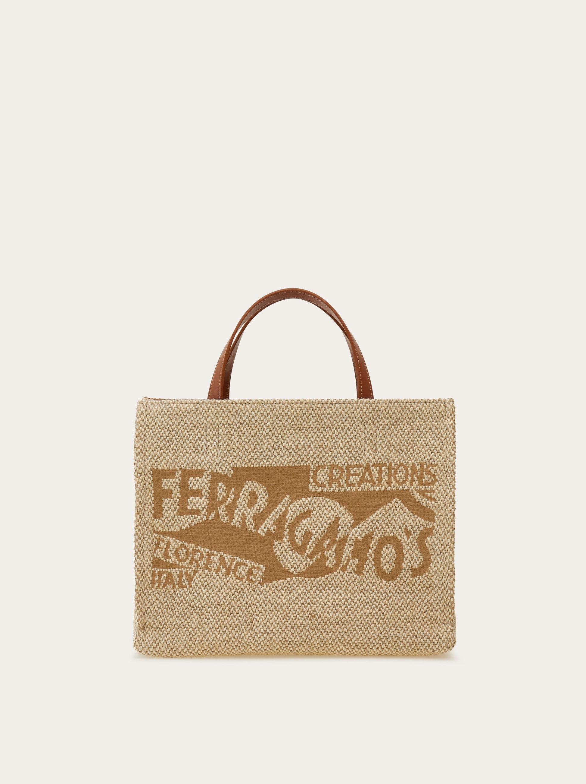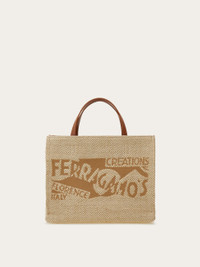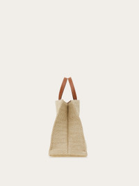 A chic option for off duty looks, this large tote features the iconic logo, created by artist Lucio Venna in the 1930's. The fabric body duets with leather handle drop and leather trims, while the fixed shoulder strap and handle drop, allowing it to be carried by hand, on the shoulder or crossbody for hands free styling. Lined interior with zip pocket. - A) Height 8.2 IN B) Length 10.4 IN C) Width 5.5 IN - Composition: fabric and calfskin - Handle drop: 3.9 in/10 cm - Medium - Made in ITALY - Product code: 219407 783299