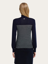 The savvy use of color blocking echoes the feminine shape of this pure wool turtleneck. With an extra-fine weave and smooth handfeel, the shoulders are highlighted gracefully and ribbed knit trims complete the design. - Composition: 100% pure virgin wool - Made in ITALY - Product code: 13H873 790868