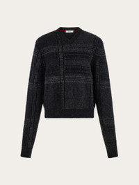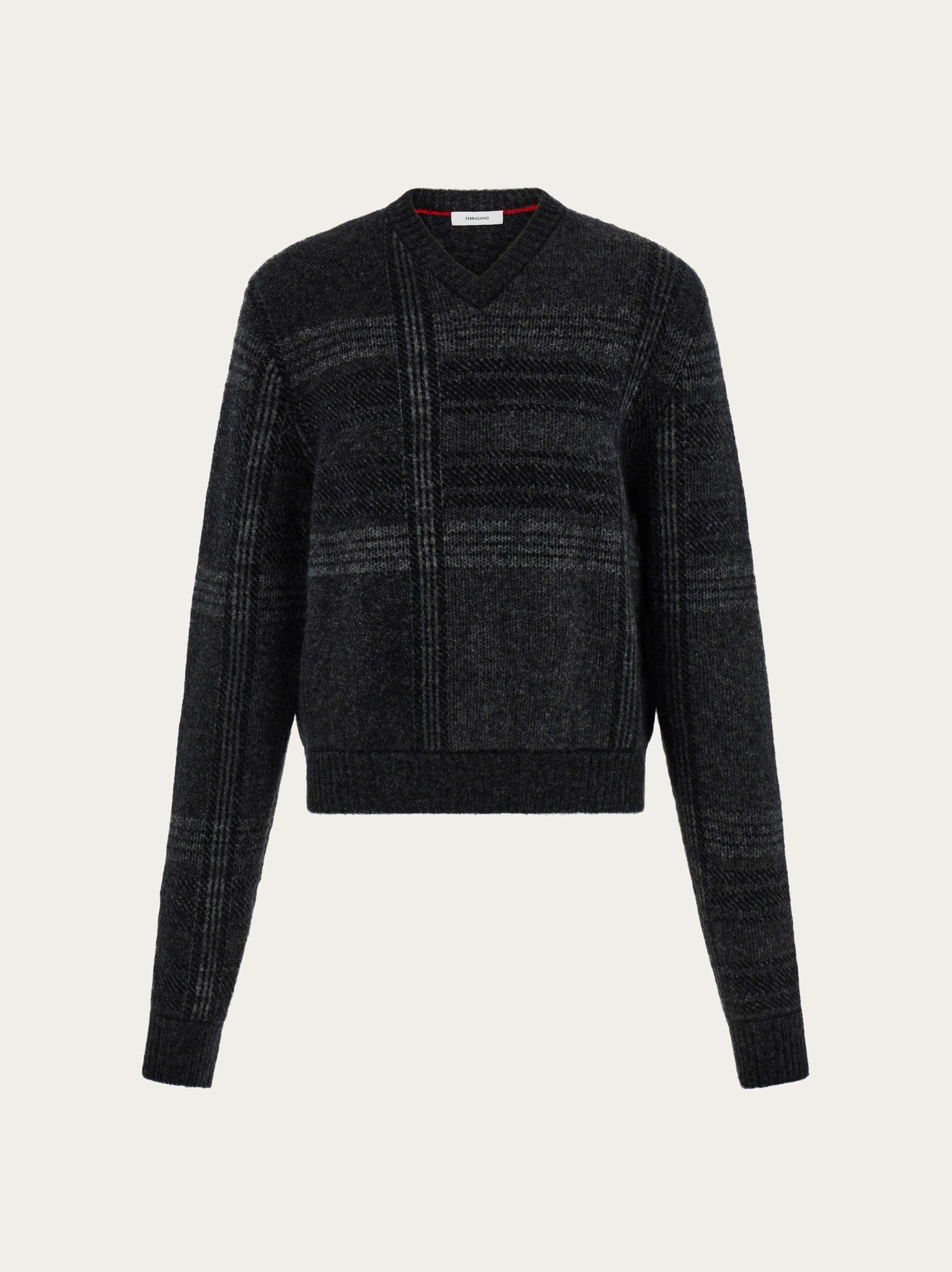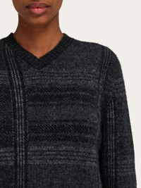 Adorned with this season’s check pattern, this new V-neck sweater flaunts several shades of grey. Made from a blend of the warmest virgin wool and yak wool, this cozy cover up has a red stitching detail on the inside of the neck. - Composition: 39% pure virgin wool, 17% yak wool, 42% polyamide - Model measurements: Height 5' 9"/175 cm; Bust 30"/76 cm; Waist 24"/61 cm; Hips 34½"/87 cm - Model wearing: 38/XS - Made in ITALY - Product code: 13H387 786103