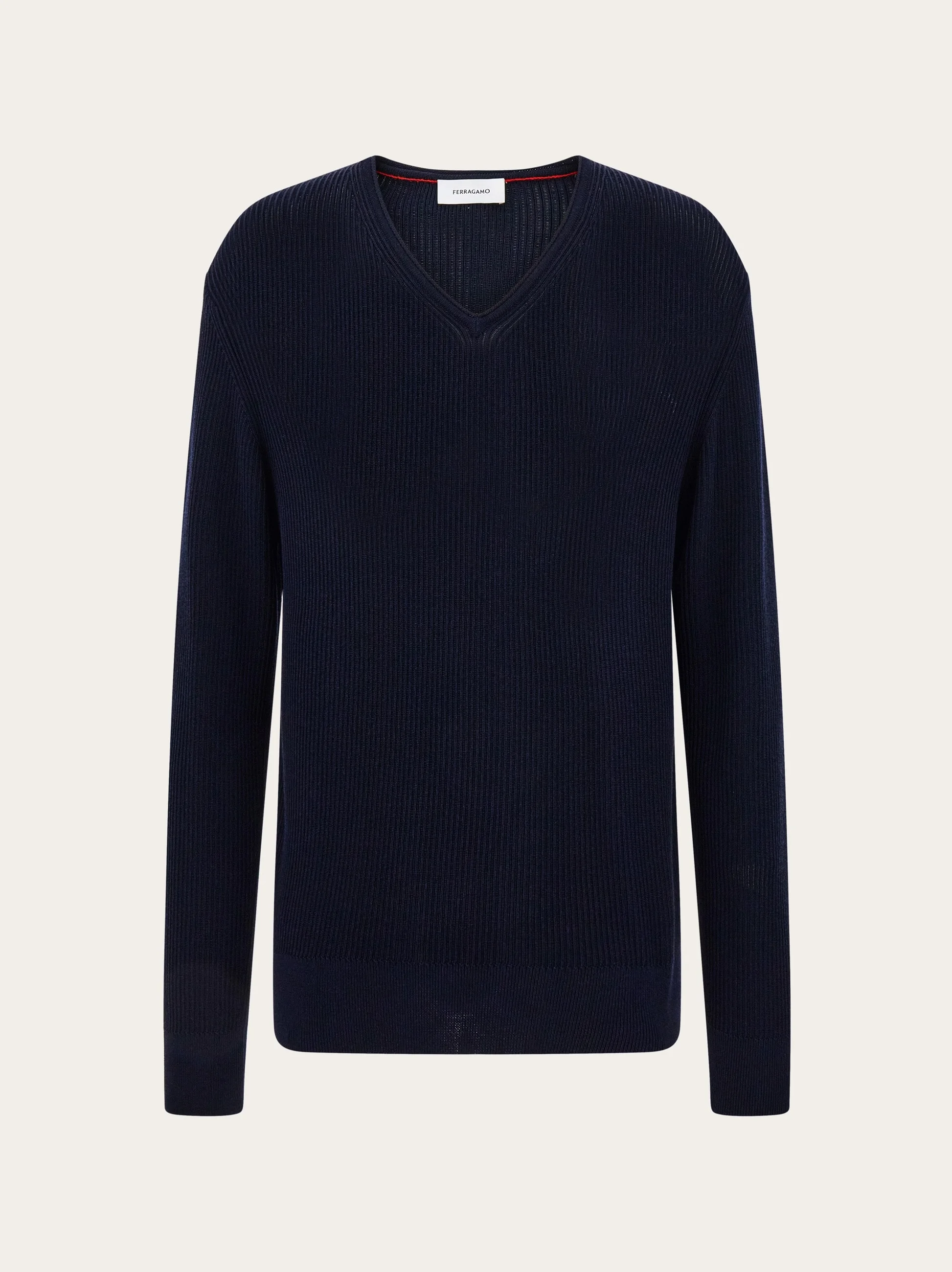 The perfect warm weather swerve that combines comfort with unique style, this V-neck is made from a blend of cotton and viscose. The soft fabric features reinforced stitching at the neck, ribbed knit cuffs and bottom hem, and a small Gancio tab at the back of the neck. - Composition: 67% viscose, 33% cotton - Made in ITALY - Product code: 145743 793884