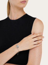 New silver bracelet with fine double chain and central signature detail inspired by the Vara buckle revisited with an organic twist. The rhodium-plated finish ensures shine and durability, with an anti-oxidation effect. - Composition: 100% silver - Made in ITALY - Product code: 780032 780652