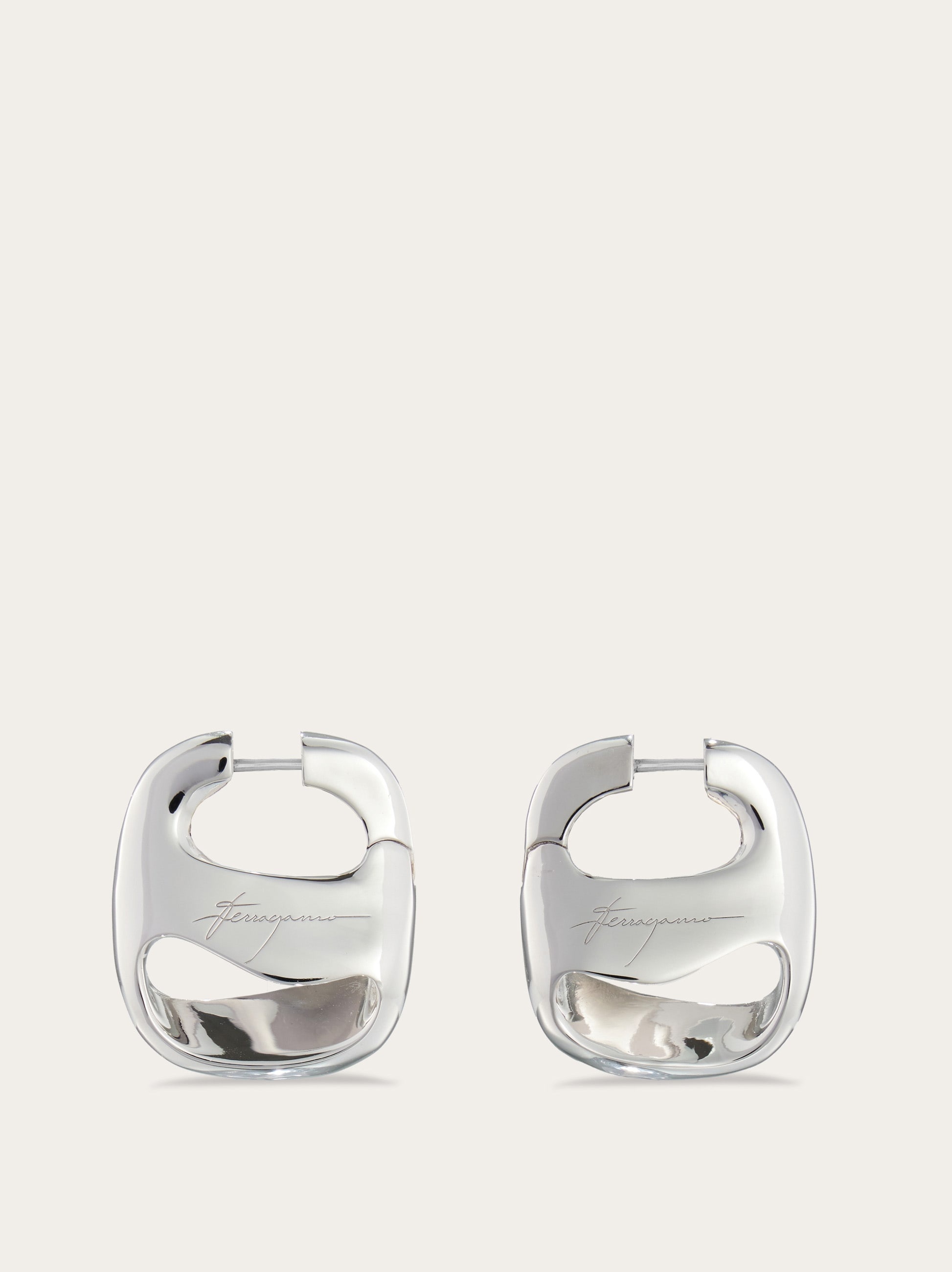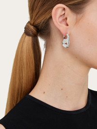 Silver earrings with a shape inspired by the Vara buckle, revisited with organic lines. The rhodium-plated finish ensures shine and durability, with an anti-oxidation effect. - width 0.9 IN - Composition: 100% silver - Large - Made in ITALY - Product code: 780023 780626