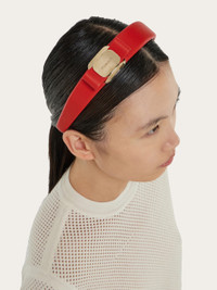 Vibrant and eye-catching, this leather headband is the perfect way to add a glamorous touch to your hairstyle. Finished with a side Vara plate bow and gleaming gold accents. - Composition: calfskin and brass - Made in ITALY - Product code: 340466 791484