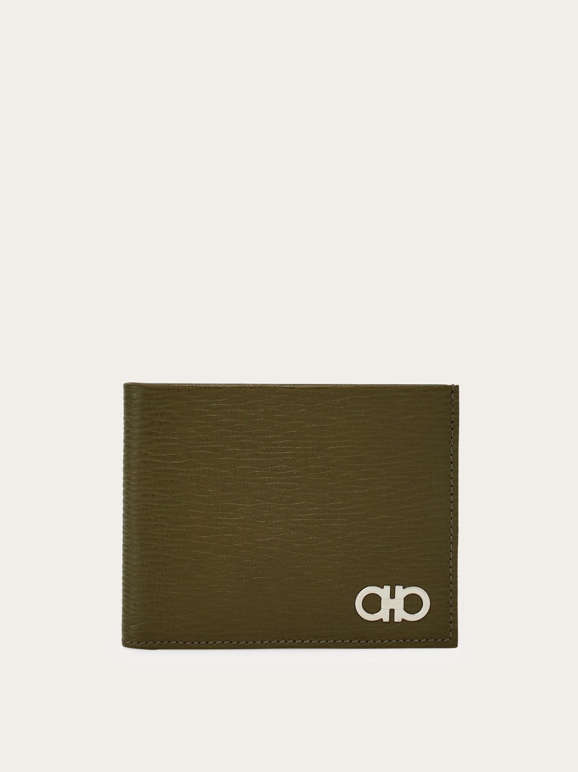 Classic lines and timeless elegance: this bifold wallet is crafted from soft hammered calfskin. The inside boasts several card slots, a bill compartment, and a practical ID holder with transparent window. Embellished with a glossy metal Gancini detail on the front. - height 3.3 IN length 4.3 IN - Composition: hammered calfskin - Made in ITALY - Product code: 66A066 779750