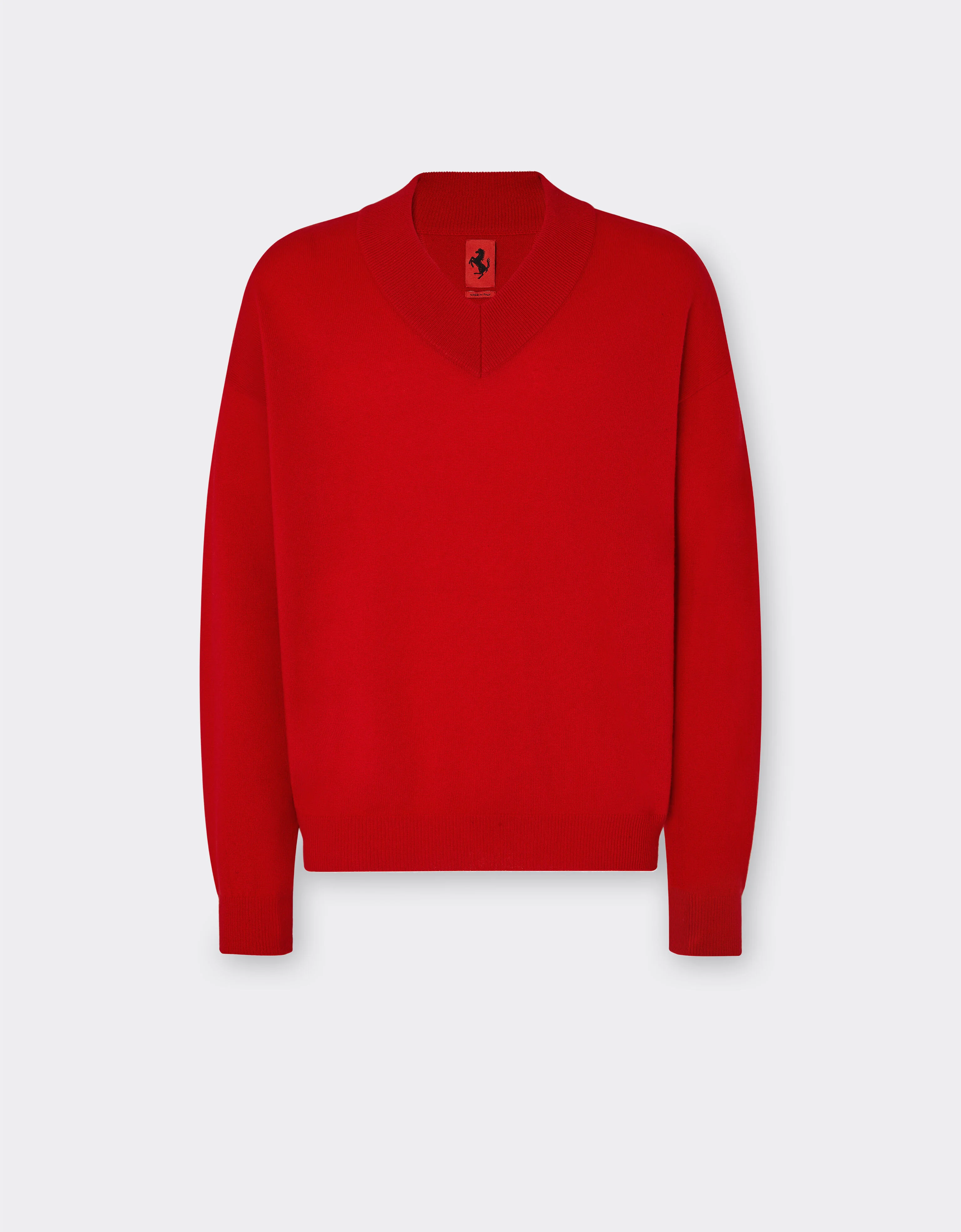 This cashmere sweater reinterprets classic shapes reinventing them with sophisticated volumes and lines through Ferrari’s filters of unique beauty. The Made in Italy garment with a wide V-neck is made of premium yarn with a soft and warm feel, perfect for the changing seasons. Distinctive rear yoke with insert. DETAILS - Made in Italy - Comfortable fit - Long sleeves - V neck - Ribbed neckline and cuffs - Rear yoke with insert MATERIALS PR: 100%WS Product Code: 21651f112