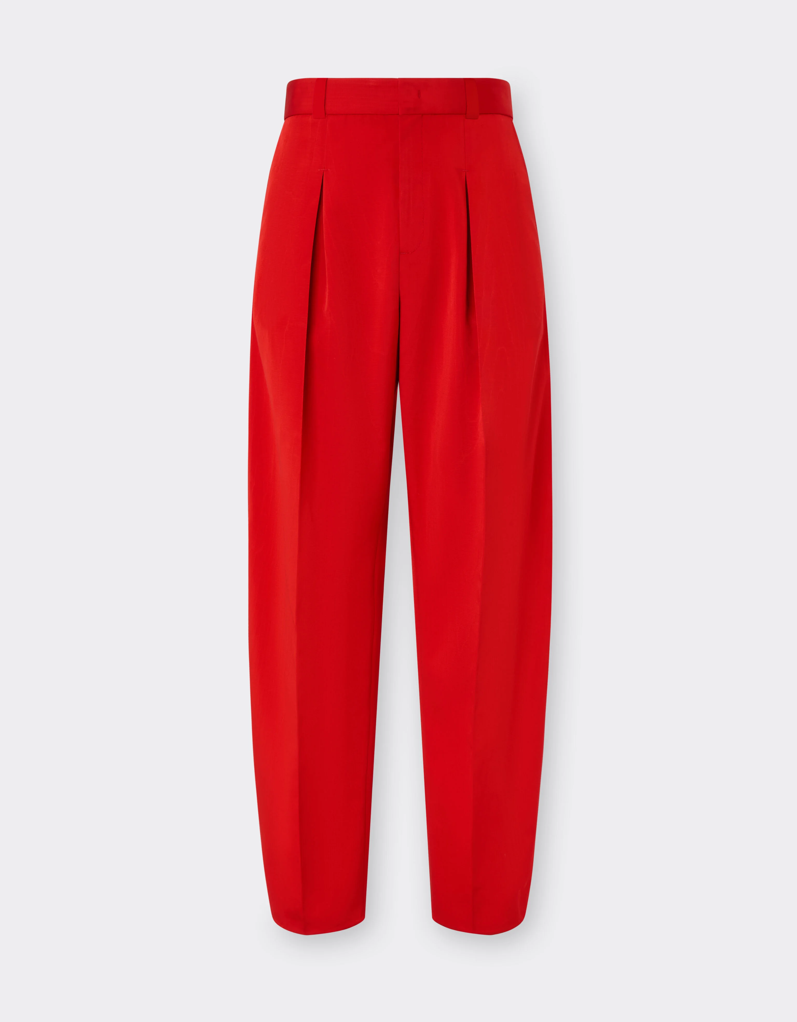 Relaxed elegance and sartorial precision coexist in these classic trousers, marked by discreet pleats. The vibrant, iridescent moire surface accompanies movement with a restrained and sophisticated light. A garment that expresses balance between fluidity and control. DETAILS - Regular fit - Mid-rise waist - Slightly tapered leg - Matching zip closure, custom counter button and hidden hooks - Front pleats - Side pockets - Back welt pockets - Custom Ferrari red half lining MATERIALS PR: VI:65.0 Product Code: 51031f185