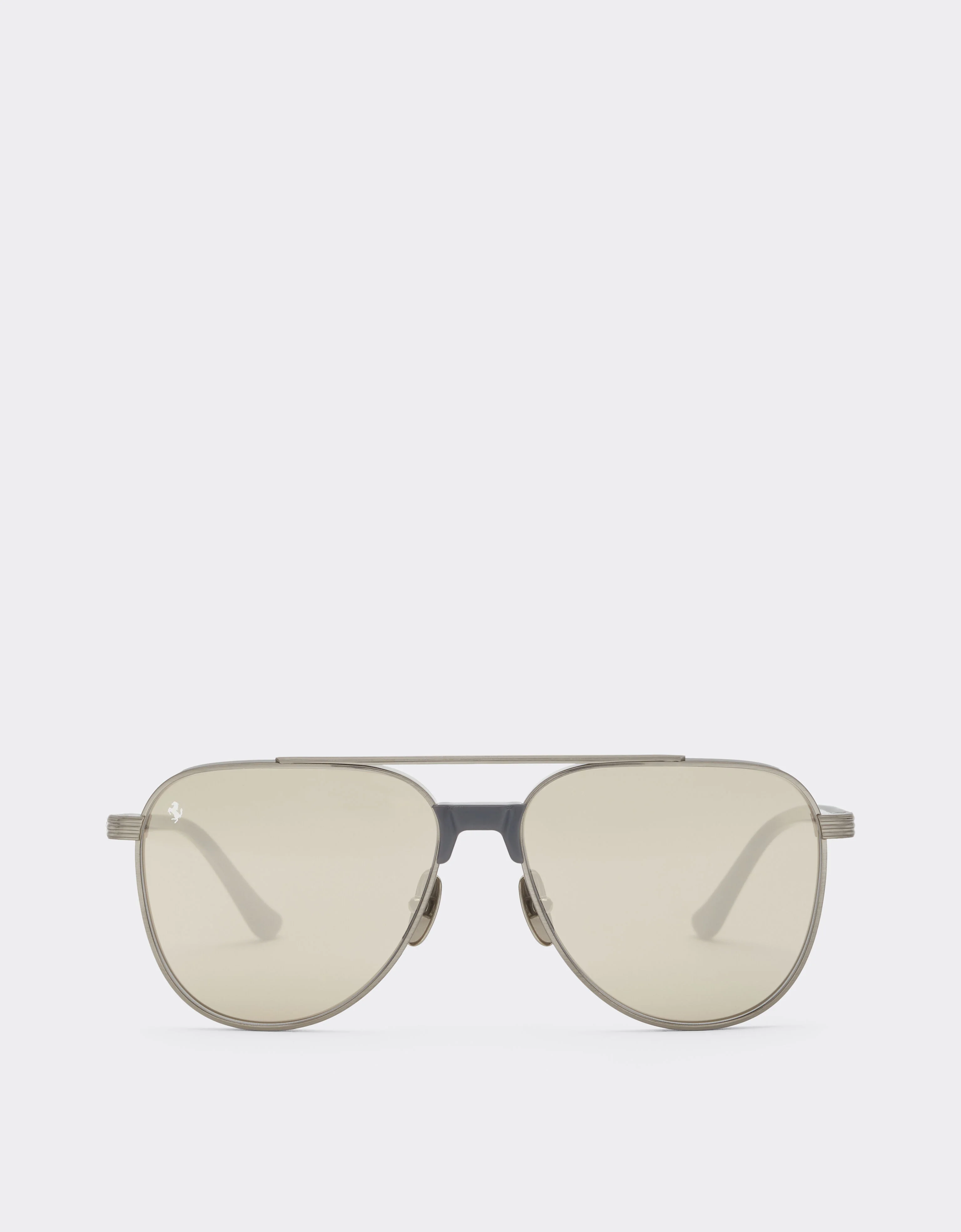 Ferrari sunglasses in brushed silver titanium and acetate with transparent gold lenses with white m