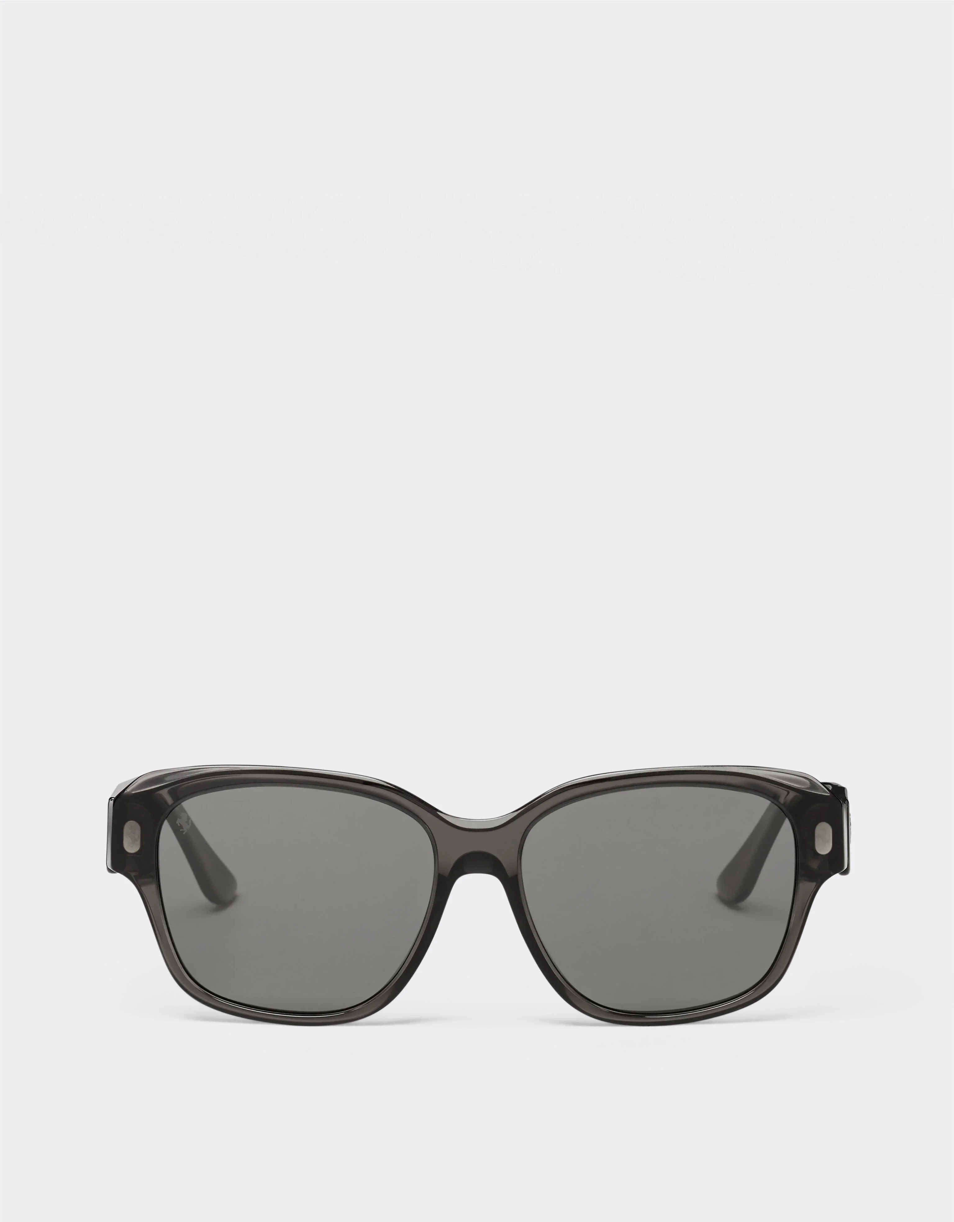 Featuring a frame made using a double acetate layer and temples with a distinctive sculpted profile, these sunglasses’ design boasts volumetric shapes and is enhanced with branded details. Sporting a metal hinge exclusive to Ferrari embellished with the laser-engraved Prancing Horse and integrated within the construction, as well as Barberini® premium glass lenses, this model embodies the perfect blend of engineering know-how and stylistic refinement. The Prancing Horse detail stands out, engraved on the lens and manually applied to the temples. DETAILS - Made in Italy - Square shape - Acetate - Frame colour: transparent black - Temple colour: black - Lens: polarised black - Lens and bridge length: 57/16 mm - Temple length: 145 mm - Suitable for multifocal lenses - Exclusive hinge branded with laser-engraved Prancing Horse - Prancing Horse on lens and temples - Exclusive packaging with custom box, case, pouch and microfibre cloth MATERIALS PR: AC-VA:100.0 Product Code: LA02Mf01