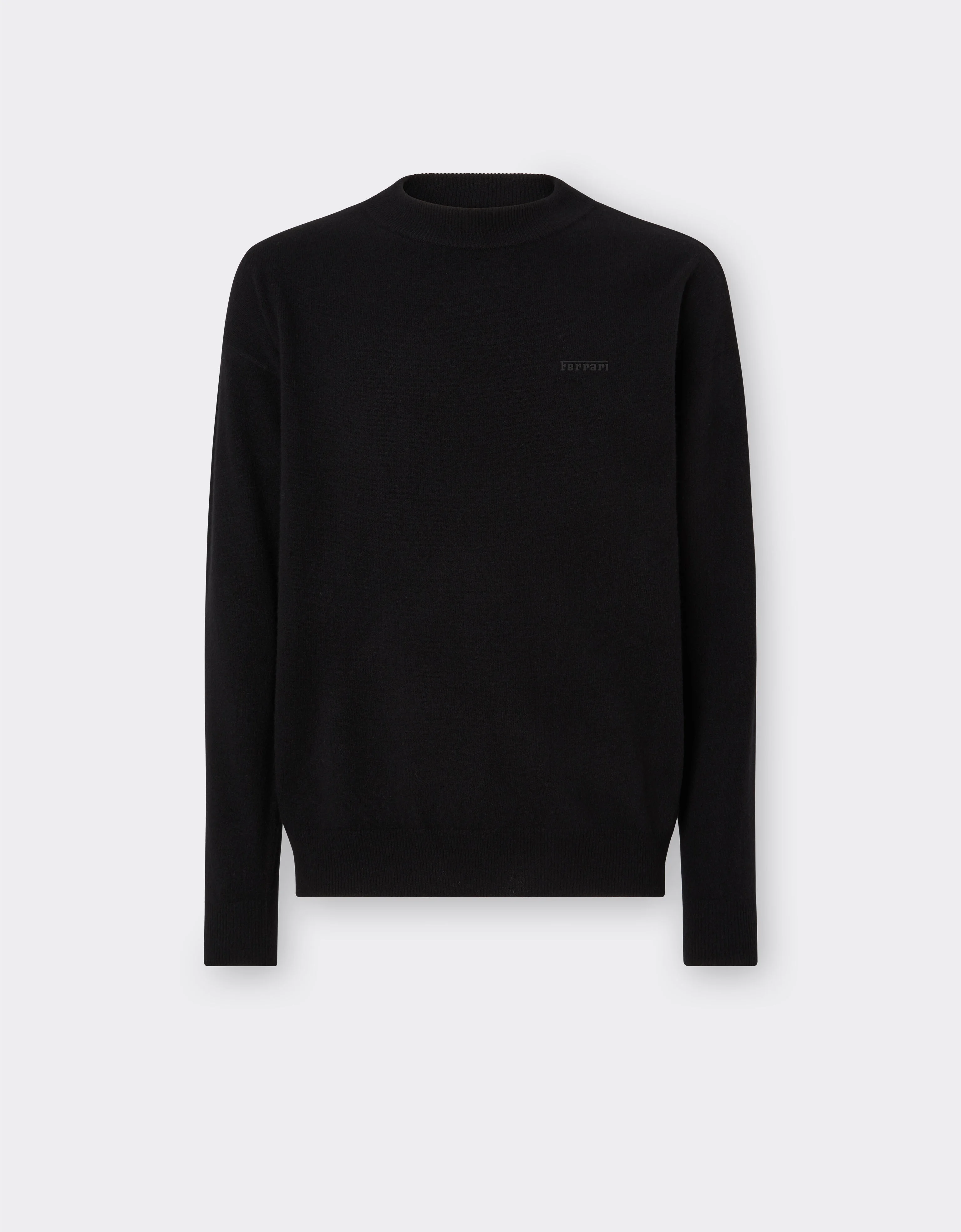Minimal lines characterise this crew neck, long-sleeved jumper, made in Italy from a refined wool and cashmere yarn. The comfortable fit design is made iconic by the Ferrari logo on the chest. DETAILS - Made in Italy - Comfortable fit - Crew neck - Long sleeves - Ferrari logo at the front MATERIALS PR: 70%WE 30%WS Product Code: 21204f01