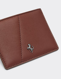 Leather card case with a minimalist and refined design. Characterized by stitching with a diagonal design, which creates a slight convexity, it is enriched on the front by the prancing horse emblem in metal with a ruthenium Chassis finish. The Made in Italy accessory features a central pocket and two card compartments. DETAILS - Made in Italy - Diagonal stitching - Main compartment - Two card compartments - Metal Rampant Horse with ruthenium finish and Chassis anti-fingerprint treatment on the front MATERIALS PR: BOS TAURUS-VA:100.0 Product Code: 49220f161
