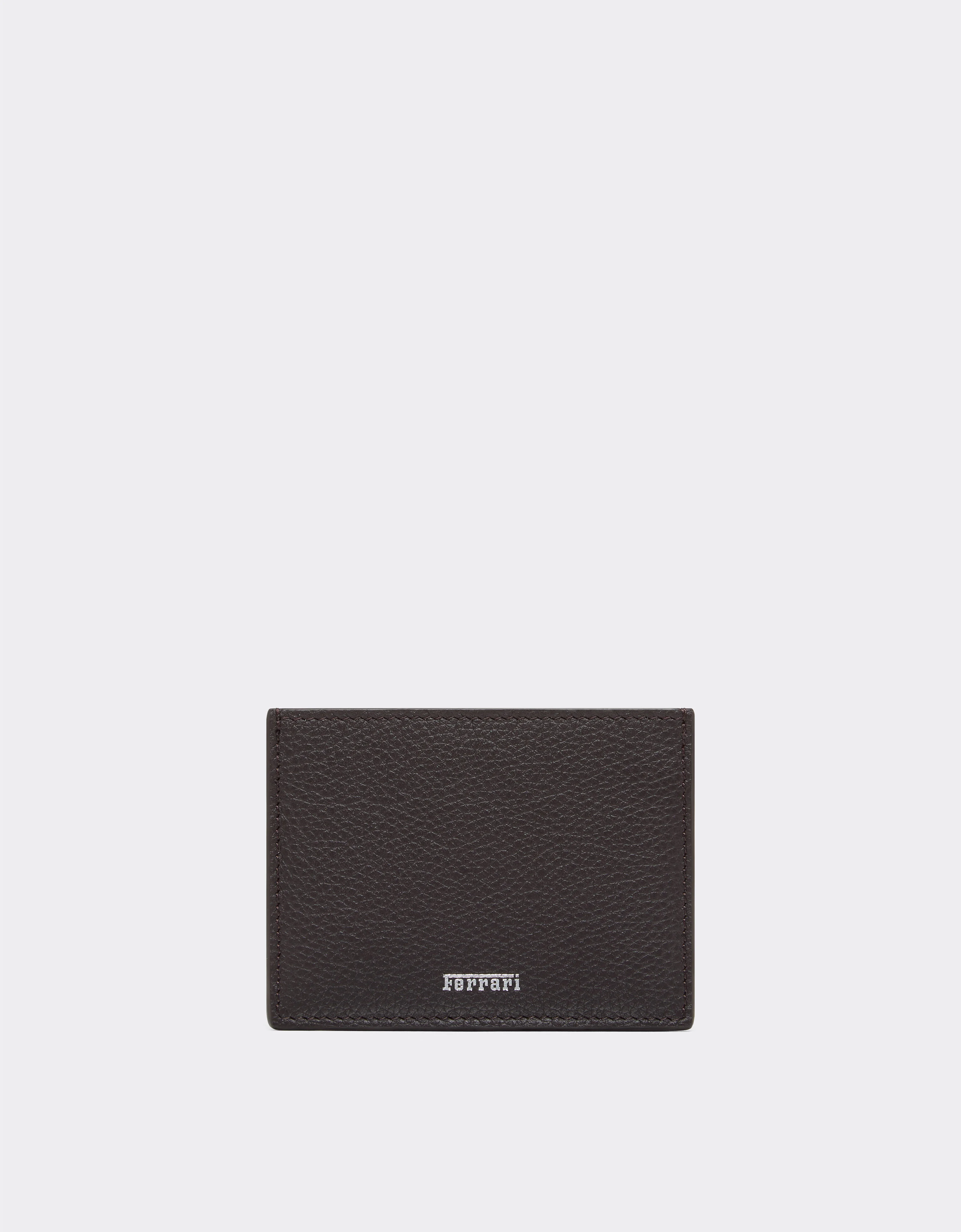 Made from soft grenade leather, this card holder exudes understated sophistication. The silver Ferrari logo is discreetly embossed on the front, while the pocket and two rear compartments for cards and tickets ensure functionality. A compact accessory that translates elegance into everyday use. DETAILS - Main pocket - Two card compartments - Ferrari logo on the front MATERIALS PR: BOS TAURUS-VA:100.0 Product Code: 50625f38