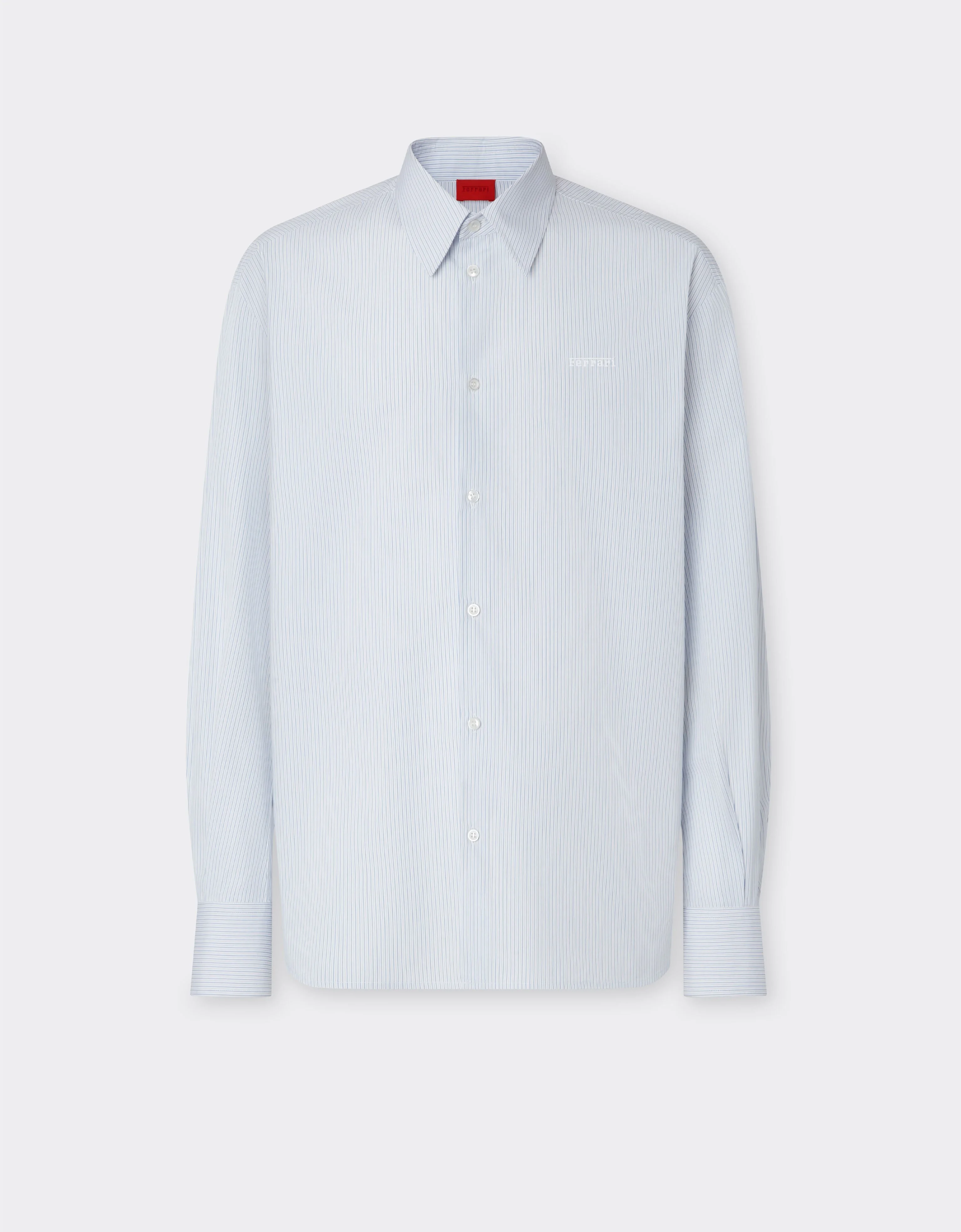 Featuring a refined multistriped pattern, this cotton poplin shirt stands out for its minimal design. The classic collar and cuffs recall traditionally tailored shirts while the custom buttons on placket and cuffs, as well as the tone-on-tone embroidered logo on the chest, add a note of iconic, understated yet unmistakable elegance. DETAILS - Regular fit - Classic collar - Multistriped pattern - Front fastening with branded buttons - Long sleeves with cuff slits and customised buttons - Tone-on-tone embroidered logo at the front MATERIALS PR: CO-TE:100.0 Product Code: 49827f13