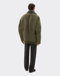 Geometric lines and artisanal workmanship define the style of this merino wool peacoat with astrakhan effect, which combines a fur interior with an exposed suede exterior to enhance its textural nature. The seams are finished with thin nappa contours to emphasise the construction while fur edging adds graphic depth to the design. The Ferrari insert at the back and the embroidered livery complete this Italian-made garment with iconic details from the collection. DETAILS - Regular fit - Fur interior - Fastening with concealed snap buttons in palladium galvanic metal - Peak lapels - Ergonomic sleeves - Fur collar, cuffs and edging - Front pockets - Ferrari insert at the back - Livery pattern at the back MATERIALS PR: LAMBS LEATHER-VA:100.0 Product Code: 49247f166