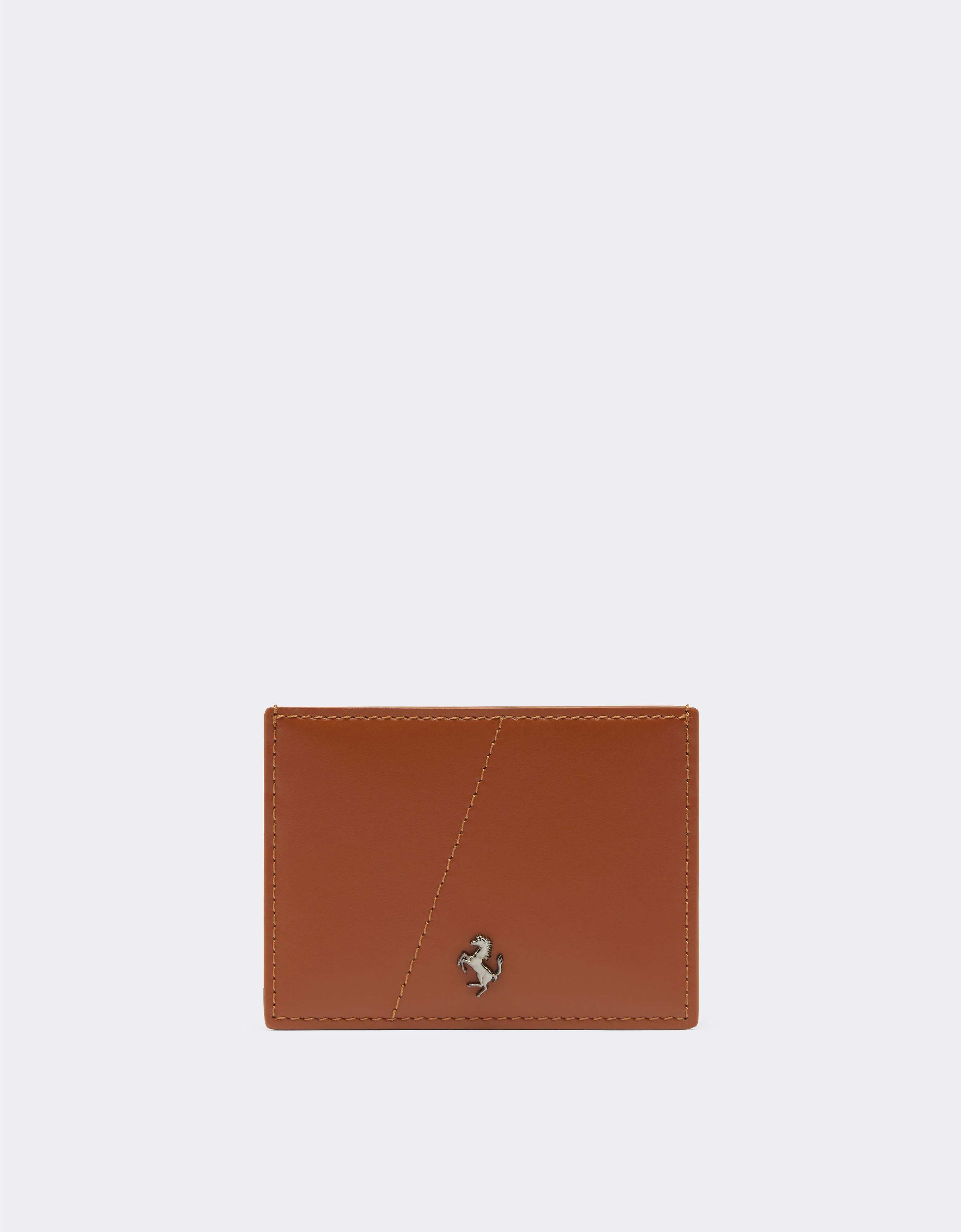 Distinguished by an essential and dynamic design, this smooth leather card holder features tone-on-tone diagonal stitching at the front. Combining elegance and functionality, the accessory is completed with a main compartment and two card slots as well as the front ruthenium Prancing Horse detail with the distinctive Chassis finish. DETAILS - Made in Italy - Main compartment - Two card slots - Nappa leather lining - Diagonal pattern with tone-on-tone stitching - Ruthenium Prancing Horse detail at the front - Dimensions: 8 cm (H) x 10 cm (W) x 0.3 cm (D) - Color:Hide MATERIALS 100% COW LEATHER Product Code: 20619f114