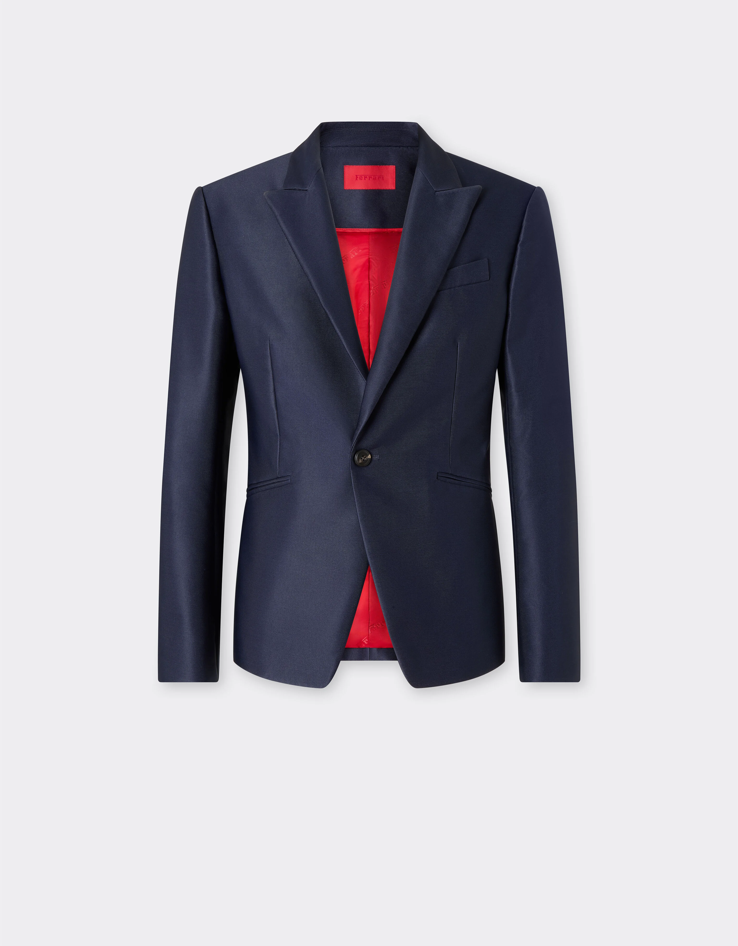 The single-breasted blazer has an elegant silhouette, punctuated by front darts and back side panels. Made from cotton and nylon gabardine with a technical look, the fabric has a full hand and a sophisticated, matte surface. Details such as the peak lapel and shaped pockets complete the design of this Made in Italy garment, whose construction reflects the principle of reduction and purity that guides the collection. DETAILS - Single-breasted closure with one button - Slim fit - Notched lapels Front darts - Back side panels - Two slits at the back - Sleeve bottoms with horn buttons - Shaped breast pocket - Double slanted welt pockets - Inside pocket with button - Matching Ferrari logo on the back - Custom Ferrari red lining MATERIALS PR: PA-TE:71.0 Product Code: 49916f172