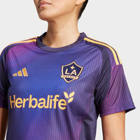 Size & Fit - Standard fit Made from Sustainable Materials - This product is made with about 100% recycled materials in efforts to eliminate waste and reduce our carbon footprint - About 100% recycled Polyester Product Features - Classic crewneck construction with 3-Stripes down sleeves - Herbalife® logotype printed on front and LA monogram logo on back below collar - Embroidered LA Galaxy crest and 3-Bar logo on chest - Mesh side panels enhance airflow - Moisture-absorbing AEROREADY for moisture management during high-intensity activities - Machine wash - The adidas LA Galaxy 25/26 Away Jersey is imported. Radiate with the energy of champions when you wear this Women's adidas LA Galaxy 25/26 Away Jersey. Crafted from Earth-friendly polyester fabric, this jersey integrates adidas AEROREADY technology to tame perspiration while you chant from the stands. An LA sunset-inspired gradient covers this crewneck design with a screen-printed Herbalife® logotype, an embroidered LA Galaxy crest, and a 3-Bar logo across the chest, letting the competition know that your team loyalty will last for light years.