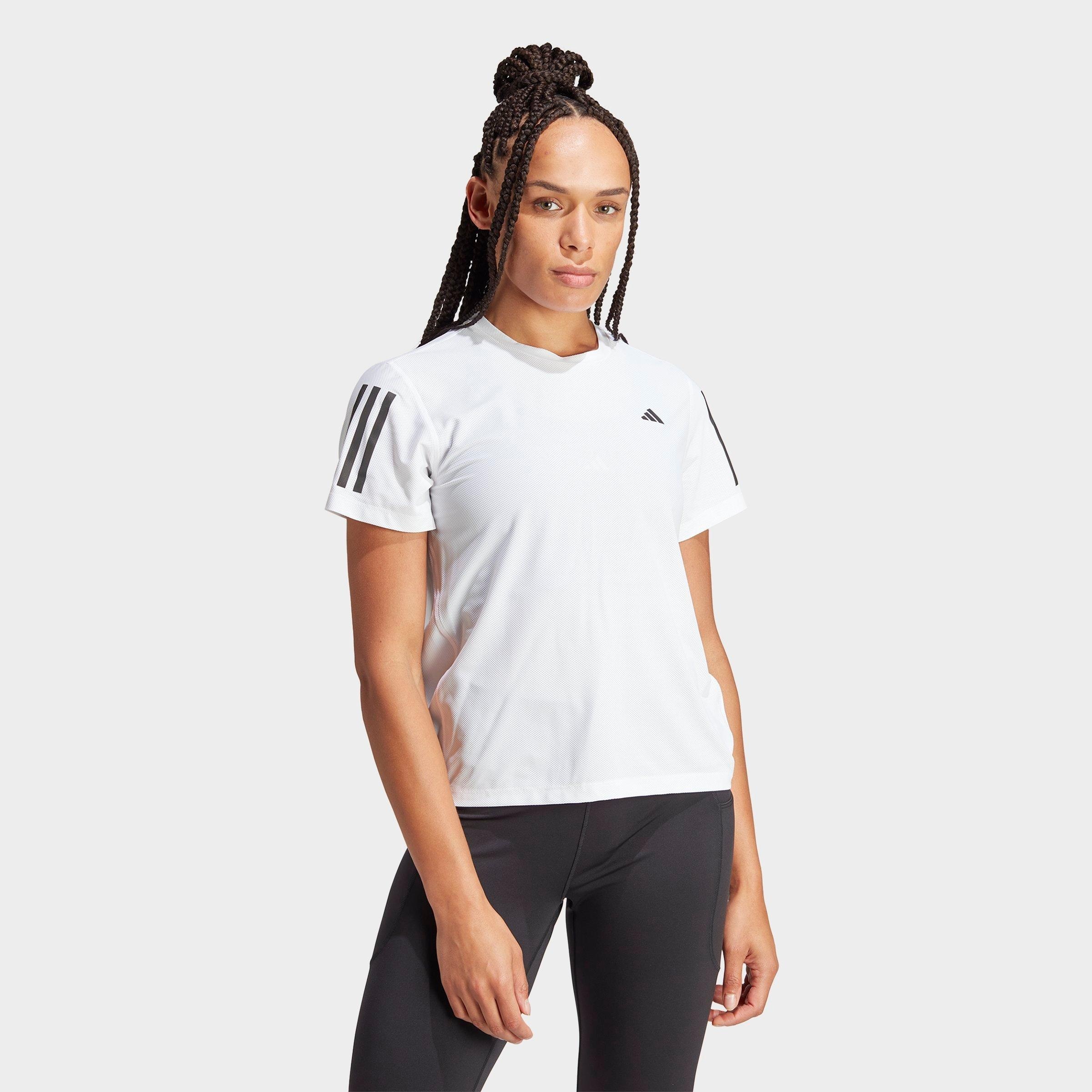 Size & Fit - Standard fit is athletic and relaxed Made from Sustainable Materials - This product is made with around 70% recycled materials in efforts to eliminate waste and reduce our carbon footprint - Around 86% Recycled Polyester and 14% Elastane mesh Product Features - Lightweight, sweat-wicking running tee with reflective 3-Stripes branding - Classic crewneck composition - Short-sleeve silhouette - Reflective details allow for visibility in low-light conditions - AEROREADY fabric for moisture management during high activity - Polygiene odor-control technology (active ingredient: silver chloride) - Machine wash - The adidas Own the Run T-Shirt is imported. Take total charge of your training goals in this Women's adidas Own The Run T-Shirt. Its lightweight, short-sleeve silhouette is crafted with AEROREADY fabric that tames your sweat, while reflective 3-Stripes down the sleeves keep you visible no matter how dark it may be during your morning or evening routine!