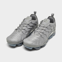 - Compression-molded upper for enhanced durability - Bootie construction provides a snug and secure fit - Floating, molded TPU cage is a direct callback to the original 1998 design - Revolutionary VaporMax Air sole for soft, lightweight responsiveness - Durable rubber outsole - Rubber pods on the outsole in high-wear areas for enhanced durability - Integrated lugs provide aggressive traction - The Nike Air VaporMax Plus is imported. Over seven years in the making, the Men's Nike Air VaporMax Plus Running Shoes are a transcendent revolution. This sleek hybrid sneaker not only brings the comfort you crave, but its unique style makes them a standout for everyday use. A snug, foot-hugging bootie construction provides the stability you want, while iconic VaporMax cushioning enhances that springy bounce you can feel with every step. Completely transforming the standard Air Max, the VaporMax Plus is a direct nod to the Air Max Plus of 1998.