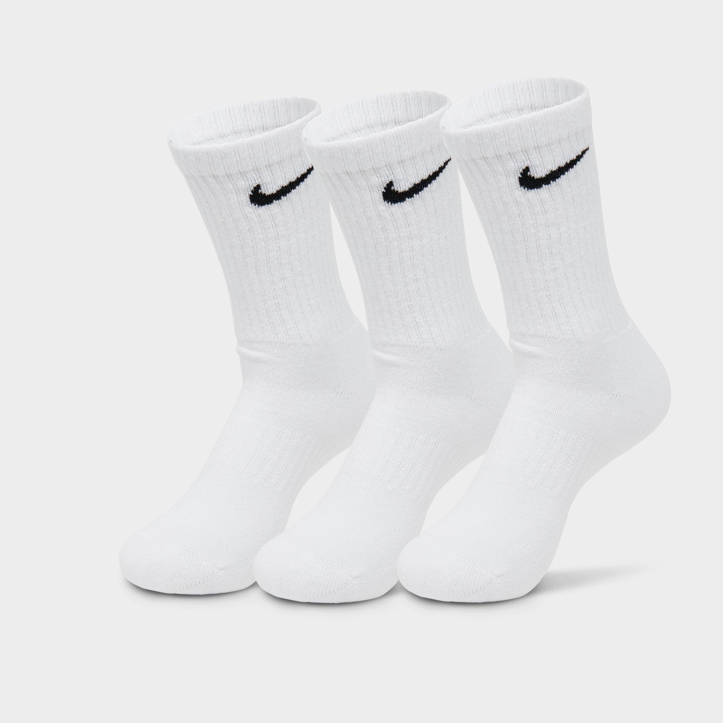 - Dri-FIT tech wicks away moisture - Thick terry sole provides comfort and absorbs impact - Ribbed arch band provides a supportive feel - Crew fit covers ankle and lower calf - Three pairs per pack - 69% cotton, 28% polyester, 2% spandex, 1% nylon - Machine wash - The Nike Everyday Cushioned Training Crew Socks (3-Pack) are imported. Take on your workout in comfort when you wear the Nike Everyday Cushioned Training Crew Socks (3-Pack). Nike Dri-FIT tech works to keep your feet dry while the thick terry soles provide the cushioning you need.