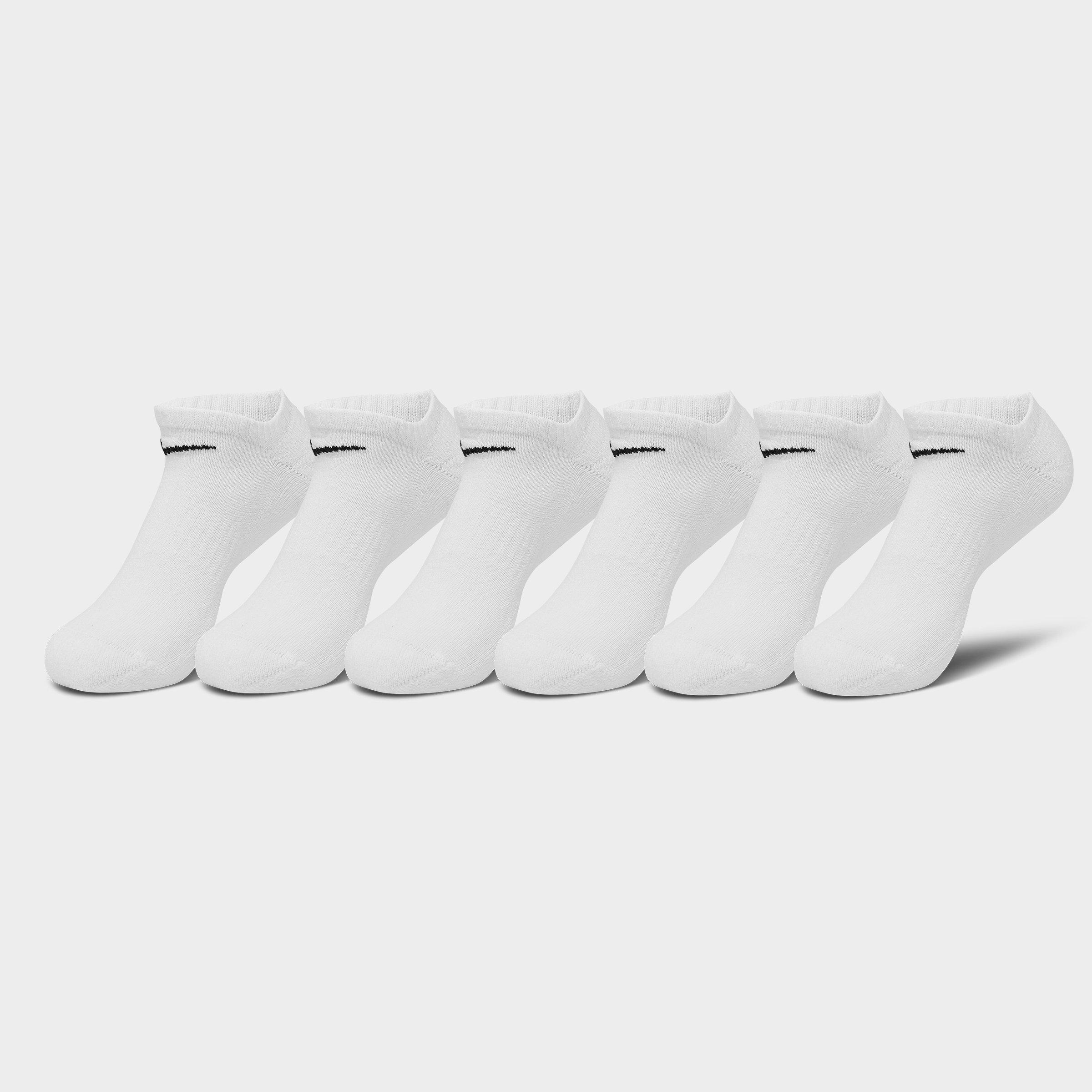 - Dri-FIT tech wicks away moisture - Thick terry sole provides comfort and absorbs impact - Ribbed arch band provides a supportive feel - No-show design for a low-profile look - Six pairs per pack - 74% cotton, 24% polyester, 1% spandex, 1% nylon - Machine wash - The Nike Everyday Cushioned Training No-Show Socks (6-Pack) are imported. Take on your workout in comfort when you wear the Nike Everyday Cushioned Training No-Show Socks (6-Pack). Nike Dri-FIT tech works to keep your feet dry while the thick terry soles provide the cushioning you need.