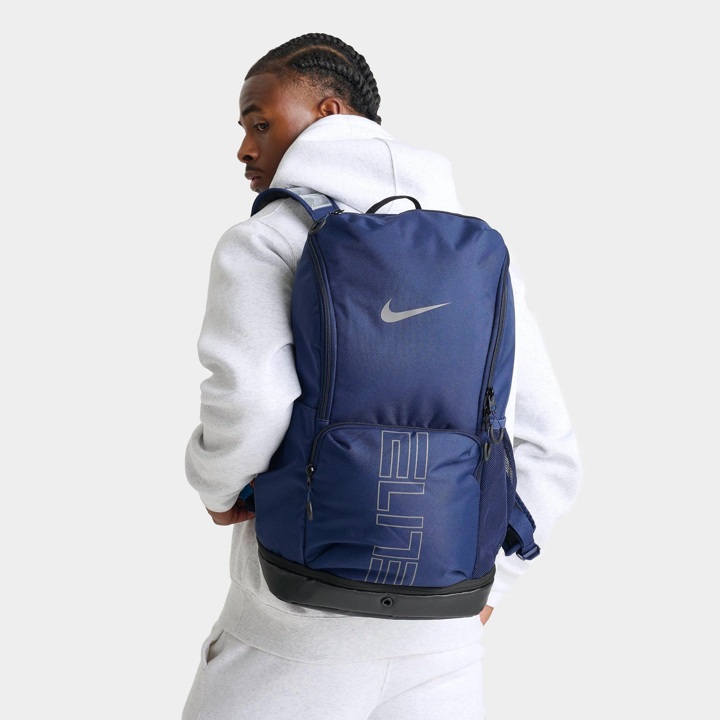 Model Sizing - artifactId:02794a18-27be-4797-85a5-bb9b0a9916ba - Basketball-sized main compartment - Exterior zippered pocket for storage of small essentials - Bottom compartment separates dirty clothes and shoes post-play - Internal laptop compartment and expandable side pockets - Trolley sleeves allows for easy attachment to travel luggage - Air Max unit-padded and adjustable shoulder straps - Internal laptop compartment - 12" W x 19" H x 9" D. - 32L capacity - 100% polyester - Spot clean - The Nike Varsity Hoops Elite Backpack (32L) is imported. Whether it's a friendly pick-up game or an intense 3-on-3 tourney, this Nike Varsity Hoops Elite Backpack (32L) will come in handy. With a surplus of storage space that can even hold the "rock," shoulder straps embedded with Air Max tech for extra comfort, and sleek ELITE branding, this pack is an essential player on the team.