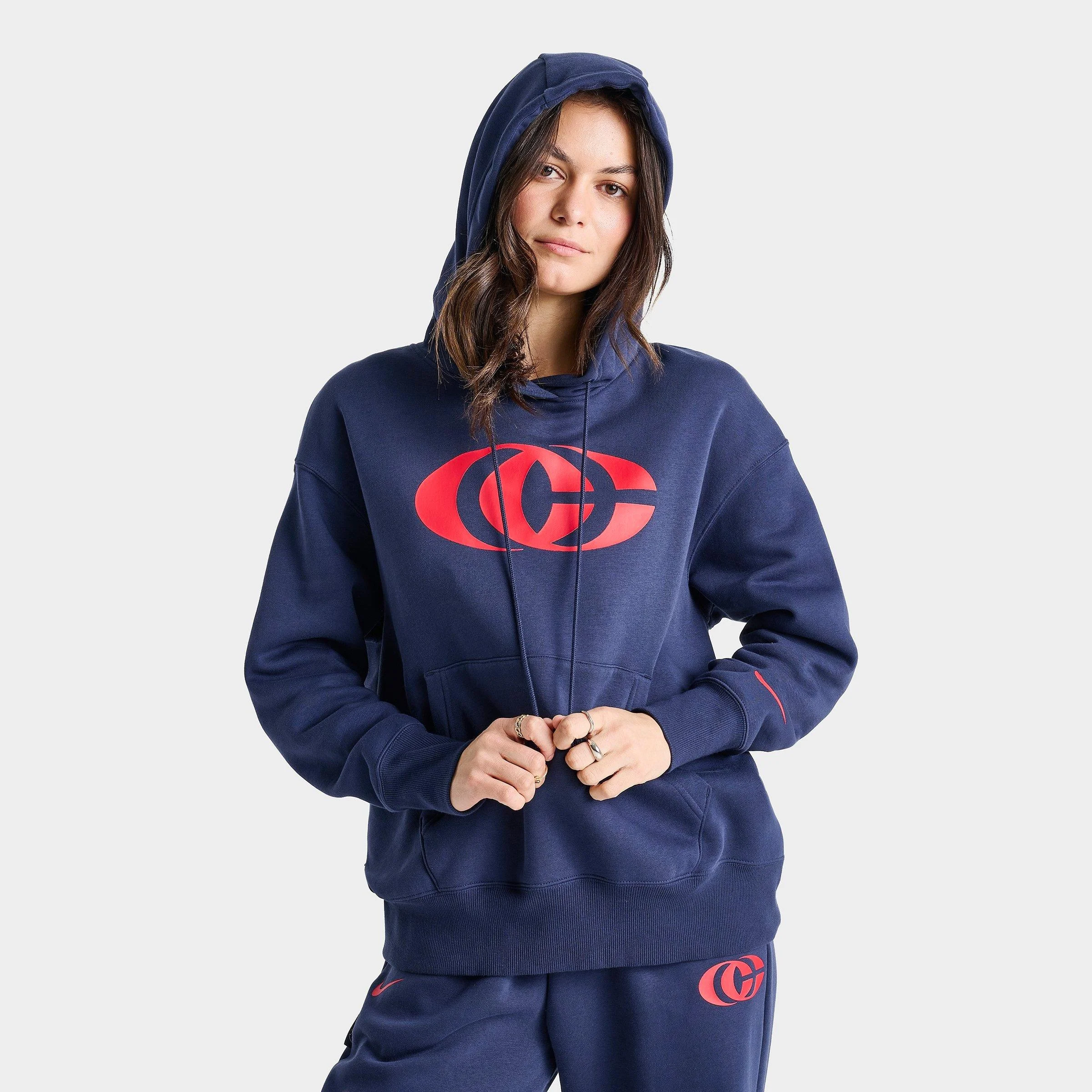 Model Sizing - Model is 5'9" and wears size Small. Waist measures 25" and Chest measures 32". Size & Fit - Standard fit is relaxed Product Features - Lightweight, semi-brushed fleece fabric composition - Nike x Caitlin Clark branding for a distinctive look - 2-paneled hood design offers versatile coverage - Relaxed, easygoing fit offers mobility - Ribbed cuffs and hem ensure a stay-put fit - Front kangaroo pocket provides convenient storage of essential items and shelter for cold hands - 80% Cotton and 20% Polyester - Machine wash - The Nike Caitlin Clark Essential Fleece Pullover Hoodie is imported. No one can compete with you on or off the court when you're wearing this Nike Caitlin Clark Essential Fleece Pullover Hoodie. Crafted from a comfy cotton-poly blend, this hooded pullover offers warmth, comfort, and contemporary courtside style.