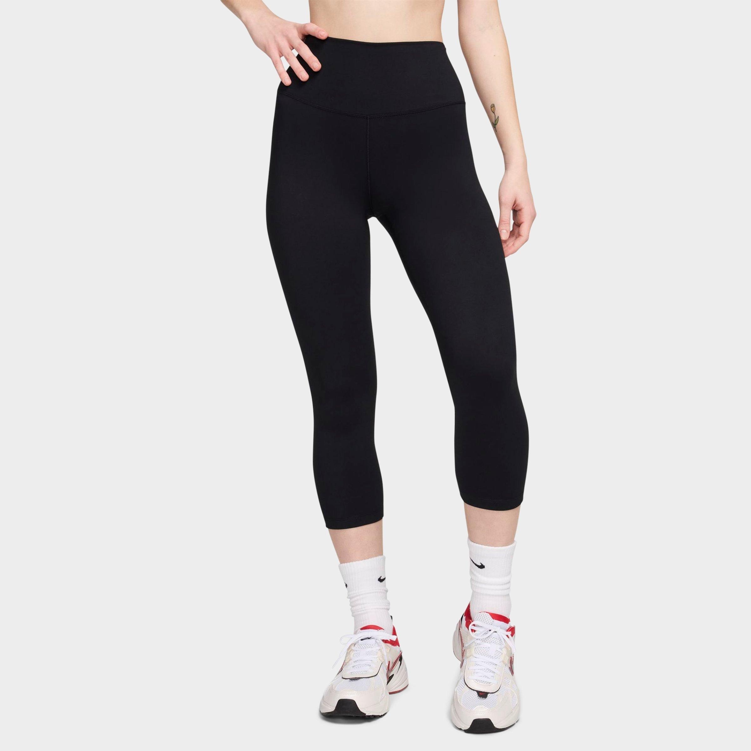 Size & Fit - Athletic, figure-hugging fit - Cropped length Product Features - Supersoft, stretchy, moisture-wicking track tights with reflective Swoosh logo on back waistband - High-rise elastic waistband is lined with mesh for a supportive, stay-put fit - Durable and opaque squat-proof design - Nike Dri-FIT technology manages moisture during high-intensity activity - Drop-in waistband pocket for convenient storage of small essential items - Reflective Swoosh branding enhances visibility in low-light conditions - 80% Polyester and 20% Spandex. Gusset lining: 100% Polyester. - Machine wash - The Nike One Dri-FIT High-Waisted Crop Leggings are imported. The Women's Nike One Dri-FIT High-Waisted Crop Leggings are your go-tos for gym days and days reserved for rest and recovery. Crafted from a satisfyingly soft and stretchy polyester-spandex blend, these high-waisted tights sport a cropped length and are equipped with moisture-wicking Nike Dri-FIT technology so sweat doesn't spoil your squat session.