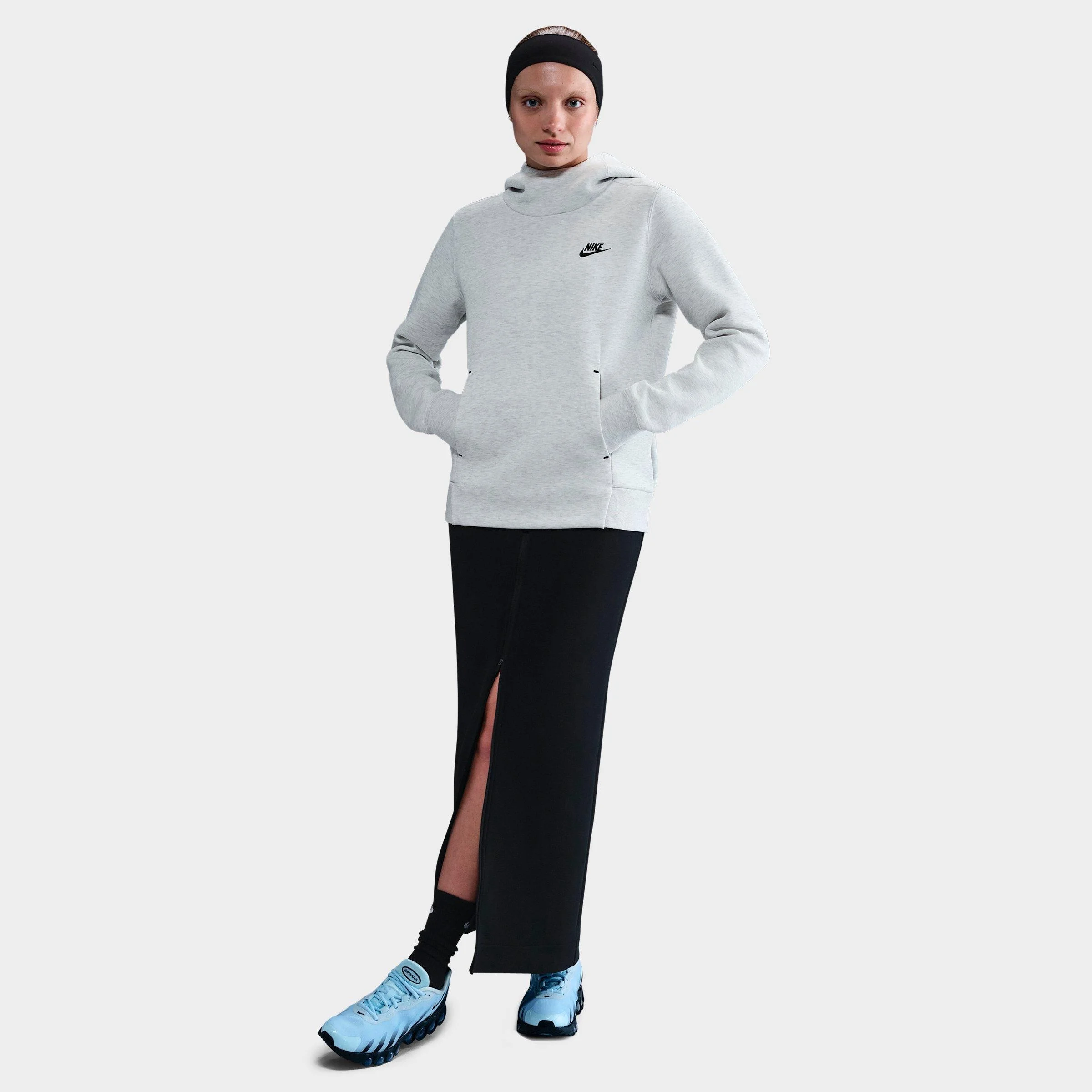Size & Fit - Standard fit is relaxed Product Features - Hooded, fleece sweatshirt with Nike Futura hear transfer logo at left chest - Premium, lightweight fleece is smooth inside out - Dual-layered 2-panel hood with cowl neck for added sophistication and warmth - Articulated sleeves enhance comfort and mobility - Kangaroo pocket for convenient storage of essential items and cold hands - Body and hood lining: 53% Cotton and 47% Polyester - Machine wash - The Nike Sportswear Tech Fleece Hoodie is imported. Leave the bulk behind and take warmth wherever your day's duties decide to take you in this Women's Nike Sportswear Tech Fleece Hoodie. Crafted from a lightweight fleece fabric blend, this hoodie sports an updated cowl neck, providing extended neck coverage and an air of sporty sophistication to your athleisure look.