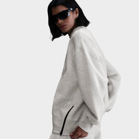 Size & Fit - Oversized fit - Dropped shoulder design Made from Sustainable Materials - This product is made with about least 50% sustainable materials, using a blend of both recycled polyester and organic cotton fibers. The blend is about 10% recycled fibers or about 10% organic cotton fibers. - Body: 53% Cotton and 47% Polyester. Rib: 97% Cotton and 3% Spandex. Product Features - Premium, lightweight fleece feels smooth inside and out - Classic crewneck construction - Printed, tonal Nike Futura logo at left chest for distinctive style - Ribbed cuffs and neckline for a stay-put fit - Zippered hem detail and darting for added appeal and dimension - Machine wash - The Women's Nike Sportswear Tech Fleece Oversized Crewneck Sweatshirt is imported. Leave the bulk behind and take warmth wherever you go in the Women's Nike Sportswear Tech Fleece Oversized Crewneck Sweatshirt. Crafted from a lightweight cotton-poly blend, this fleecy crewneck has been refined for an even smoother finish, sporting dropped shoulders, a zippered hem detail, and darting for a modish athletic aesthetic.