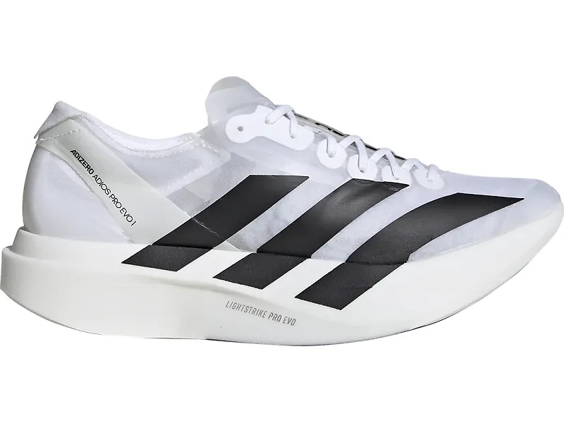 *NOTE: ORDERS WILL NOT SHIP UNTIL MONDAY 12/2. Signature is required upon delivery.* Limit one pair per customer. Outfitter's Tip: this is a UNISEX-sized shoe. Men's sizes are shown — women should order 1.5 sizes below their standard running shoe size. For example: for a women's size 9.5 shoe, order a size 8. Tested by world-class athletes like the 2023 Berlin Marathon winner, Tigist Assefa, the adidas Adizero Adios Pro Evo 1 is the secret weapon designed to help you crush your race day goals. Weighing just 4.8 oz, this revolutionary racing shoe is 40% lighter than any previous adidas super shoe. A first-of-its-kind forefoot rocker and advanced Lightstrike Pro foam propel you forward with maximum energy return, and the minimalist design uses translucent materials that showcase its featherlight construction. How fast do you think you could run if you got your hands (and feet) on the same shoes worn by elite marathoners? Now’s your chance to find out. Details: - Upper: An ultra-lightweight mesh upper gives you a breathable, barely-there feel while keeping you secure and locked in as you maintain your race pace. - Midsole: The combination of Lightstrike Pro foam, carbon EnergyRods and a forefoot rocker geometry placed at 60% the length of the shoe work together to give you forward propulsion with maximum energy return so you can run your fastest. - Outsole: A new cutting-edge outsole technology gives you optimum traction at a significantly lower weight.