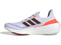 The adidas Ultraboost Light gives you epic energy for all of your runs. A rehaul of the legendary BOOST material was so major that adidas renamed the Ultraboost 23 to the Ultraboost Light. The midsole features 30% lighter BOOST material that gives you plenty of energy return to keep your legs feeling fresh through every stride. Hundreds of small BOOST capsules work together to give you cushion and energy, which lets you run farther and longer. The Continental™ Rubber outsole provides durable grip and traction for the road in wet and dry conditions. One runner even ran in a snowstorm and was impressed with the grip on wet, icy pavement in our adidas Ultraboost Light review. This is combined with the Linear Energy Push geometry to give you snappy toe-offs and propel you forward throughout your run. The upper uses Primeknit+ FORGED technology that is made in part with recycled materials to provide a cushioned, sock-like fit that won’t slip during your run and looks stylish enough to wear afterward. Plus, it accommodates a variety of foot shapes, while the split heel counter keeps your foot locked down. Get the energy, comfort and style you crave in a running shoe with the adidas Ultraboost Light.
