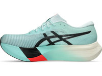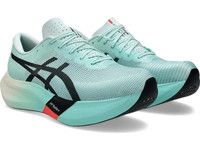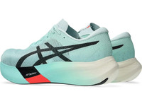 The carbon-plated ASICS MetaSpeed Edge Paris is built to crush your PRs. This is a shoe for cadence-style runners who change cadence easier as they run faster. (If you change your stride to run faster, then the ASICS MetaSeed Sky. was designed for you). The MetaSpeed Edge features ASICS’ FF BLAST TURBO™, a lightweight cushion that improves compression and creates a responsive feel underfoot. This is combined with a carbon plate to guide and propel your foot forward. The MetaSpeed Edge’s curved sole design helps to reduce ankle flexion, which allows runners to conserve more energy and run further. The ASICSGRIP™ outsole is grippy to handle twists and turns (as well as wet pavement) on race day. This shoe is stable, with a lower stack height and firmer cushion than other carbon-plated shoes, which makes it great for 5K to half marathons, particularly if they have a lot of twists and turns. The upper is light, breathable and a bit stiff, so you can get a good lockdown feel and run those corners with ease. This shoe fits a bit narrower and shorter than other ASICS shoes, so if you are in between sizes, you may want to get a half size larger. Start fast and finish faster in the ASICS MetaSpeed Edge Paris.