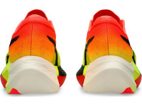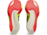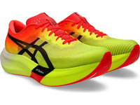 The ASICS Metaspeed Sky Paris takes race-day speed to the next level. The Metaspeed Sky helps boost your speed by extending your stride length. The longer stride length means you go farther with each step without increasing your cadence. ASICS powered the shoe with a FLYTEFOAM Blast Turbo midsole. The top-tier foam is light and springy for a ride that won’t hold you back. Plus, designers added a carbon-fiber plate that guides your foot through the transition and propels you forward. A curved outsole helps conserve more energy with each step, so you can run longer, while a proprietary rubber outsole sticks to the road without weighing you down. Engineered for top speed on race day, the ASICS Metaspeed Sky Paris gives you everything you need to chase down your PR.