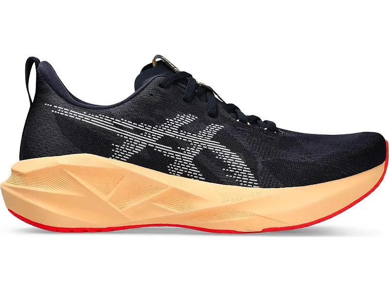 Prepare for blast-off in the ASICS Novablast 5. This high-cushioned daily trainer will take your run to new heights thanks to its trampoline-inspired outsole and new FF BLAST MAX foam that gives your runs a dynamic bounce and responsive energy return. In our ASICS Novablast 5 review, wear-tester Mandy said, “The new FF BLAST MAX cushioning gave me the perfect combination of bounce and cushion while remaining lightweight.” Details: - Upper: A jacquard mesh upper wraps your foot in slipper-like comfort while providing improved breathability and stretch. A padded heel collar holds your feet securely in place and prevents unwanted rubbing. - Midsole: New FF BLAST MAX foam delivers an enhanced bounce and responsiveness while maintaining the shoe's signature lightweight feel. - Outsole: The outsole retains its distinctive trampoline-inspired geometry that's made the Novablast series a favorite for many runners. A soft AHAR® LO outsole is durable and improves traction on a variety of surfaces.