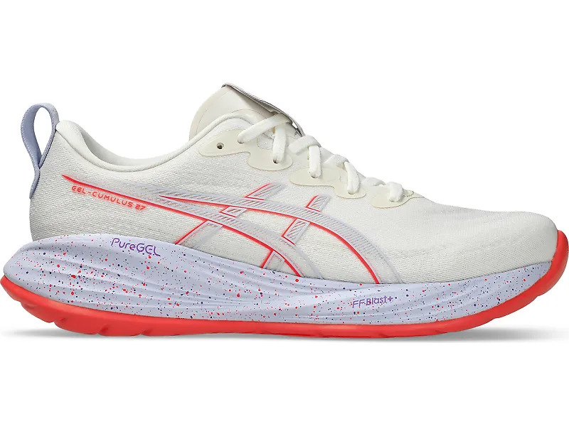 Whether you’re going for a run, walking around the neighborhood or just want a reliable pair of shoes to spend all day in, the ASICS Gel-Cumulus 27 has your back. This trusted daily trainer delivers that perfect sweet spot of cushioning and responsiveness that makes every step feel natural and fluid. FF BLAST PLUS™ midsole foam with PureGEL™ in the heel gives you enough cushioning for soft landings, while the mesh upper keeps you comfortable and locked in. Details: - Upper: A comfortable and secure engineered mesh wraps your foot like a gentle hug. The updated design features a thicker tongue that stays in place while a handy pull tab makes slipping these on a breeze. - Midsole: FF BLAST PLUS™ foam creates that Goldilocks feeling—not too soft, not too firm. Combined with PureGEL™ technology in the heel, the Cumulus 27 gives you smooth landings that let you focus your run. - Outsole: The durable outsole design gives you reliable traction on the roads while maintaining a balance between grip and flexibility.