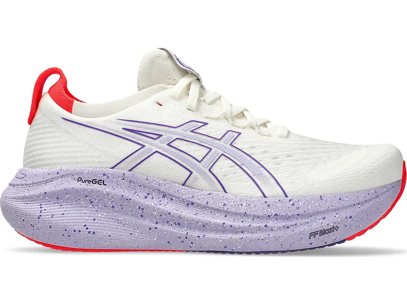 Enjoy cloud-like comfort with the ASICS GEL-Nimbus 27, featuring enhanced cushioning and breathability for your daily miles. This latest version of ASICS' premium daily trainer adds 2 mm of softer FF BLAST PLUS ECO cushioning while maintaining its lightweight feel thanks to an airy jacquard mesh upper. Whether you're logging easy miles or recovering from a long run, the Nimbus 27 delivers a plush, stable ride that's made it a favorite among comfort-seeking runners. Read what our wear-testers thought in our full ASICS Gel-Nimbus 27 review. Details: - Upper: Light, breathable jacquard mesh with a padded collar and stretchy tongue keep you secure and comfortable all-day - Midsole: Soft FF BLAST PLUS ECO foam and an increased stack height give you maximum cushioning for a smooth, soft ride - Outsole: Durable rubber provides reliable traction and smooth transitions