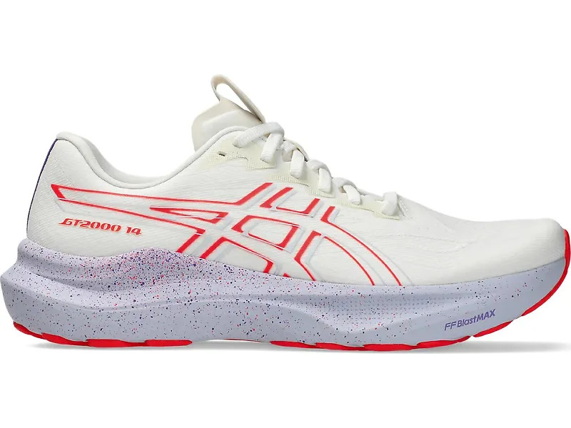 Run with confidence in the ASICS GT-2000 14. Built for runners who need supportive stability without giving up that energetic feel, this versatile daily trainer combines FF BLAST MAX cushioning with ASICS’ 3D GUIDANCE SYSTEM to keep your stride balanced and your runs enjoyable. The innovative trampoline-inspired forefoot pod helps create better stability while giving you that extra bounce when you push off — because support and speed work better together. Details: - Upper: The breathable woven mesh keeps your feet comfortable and dry, while using at least 50% recycled materials. The asymmetric tongue wing provides a secure midfoot feel without shifting around during your run, and reflective details help keep you visible during early morning or evening miles. - Midsole: Full-length FF BLAST MAX foam provides one of ASICS' lightest, most energetic cushioning experiences. The 3D GUIDANCE SYSTEM offers adaptive stability that guides your feet forward from landing through toe-off, while rearfoot PureGEL technology under the heel delivers shock absorption and soft landings. - Outsole: A bouncy, trampoline-inspired forefoot pod strategically placed in the outsole gives you an amplified toe-off with added stability, helping you maintain momentum through your stride. AHAR® LO outsole rubber placed in key areas of the outsole give you reliable grip and traction, while ASICS' pinnacle high abrasion resistant rubber, AHARPLUS™, located in the heel is approximately three times more durable than standard outsole rubbers.
