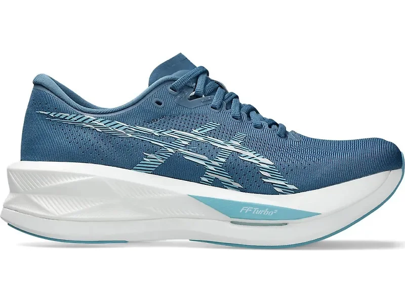 Speed feels natural in the ASICS Sonicblast. Ready to graduate from everyday training shoes to something snappier? The Sonicblast combines the familiar comfort of FF BLAST MAX cushioning with ultra-bouncy FF Turbo² foam and a flexible Pebax Astroplate to create a springy ride that thrives at faster paces. In our ASICS Sonicblast review, wear-tester Heather said "The FF Turbo² foam felt light and responsive, and it's just an exciting shoe to run in." Details: - Upper: The jacquard woven construction delivers that "just right" Goldilocks fit—not too loose, not too tight, but perfectly dialed in. The traditional feel includes a thin, stretchy tongue and slightly padded heel collar that disappears on your foot once you start moving, letting you focus entirely on your run. - Midsole: The innovative dual-layer design places FF BLAST MAX on the bottom for stability and familiar comfort, topped with FF Turbo² foam for that wild energy return. The teardrop-shaped Pebax Astroplate flexes naturally between the layers, creating an experience that's firm and engaging without feeling harsh or unforgiving. - Outsole: ASICSGRIP technology gives you the confidence to tackle any surface, so you can focus on enjoying your run instead of worrying about your footing.